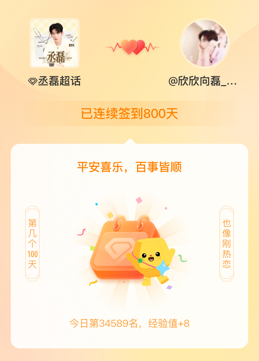 丞磊我在丞磊连续签到800天啦,百看不厌,久处亦欢~