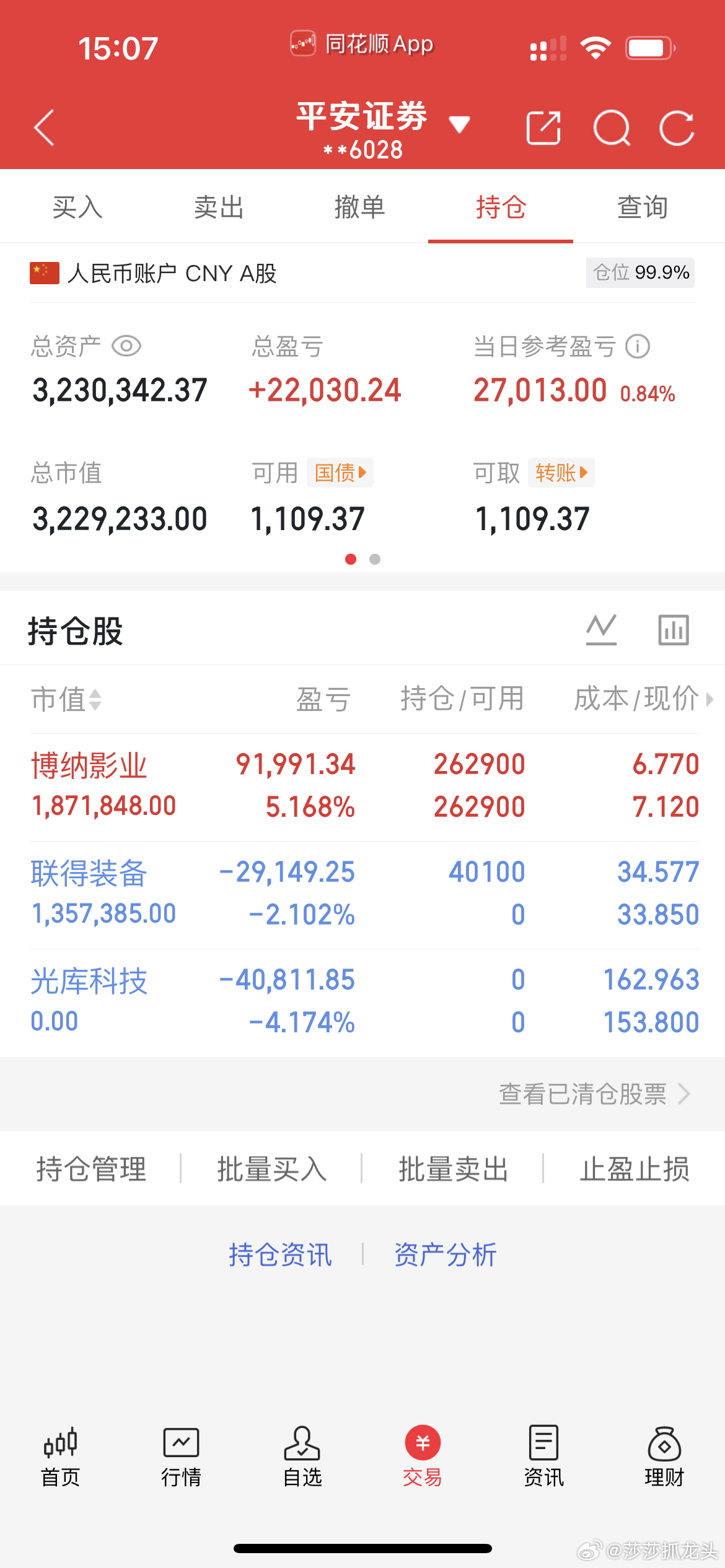 中午赚两万多,下午收盘还是赚了两万多,没什么波动呀!主要是博纳涨了点,联得跌了点,没关系这周结束了,兄弟姐妹们我们下周再战了大家点赞评论888支持一波