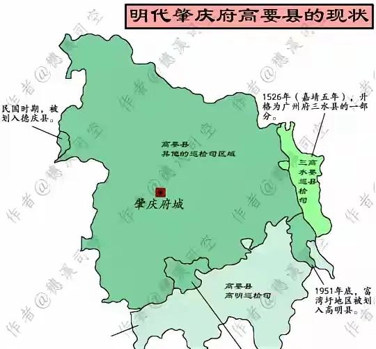 高要太可怜了!辖地越来越小!看看明朝的高要地图,那时很大,后来先后丢了高明县(现佛山市高明区)、三水县一部分(现佛山市三水区)、富湾镇(并入了高明)、悦城镇一部分(德庆县),以及2025年失去了蛟塘镇大部分(并入佛山高明区)。