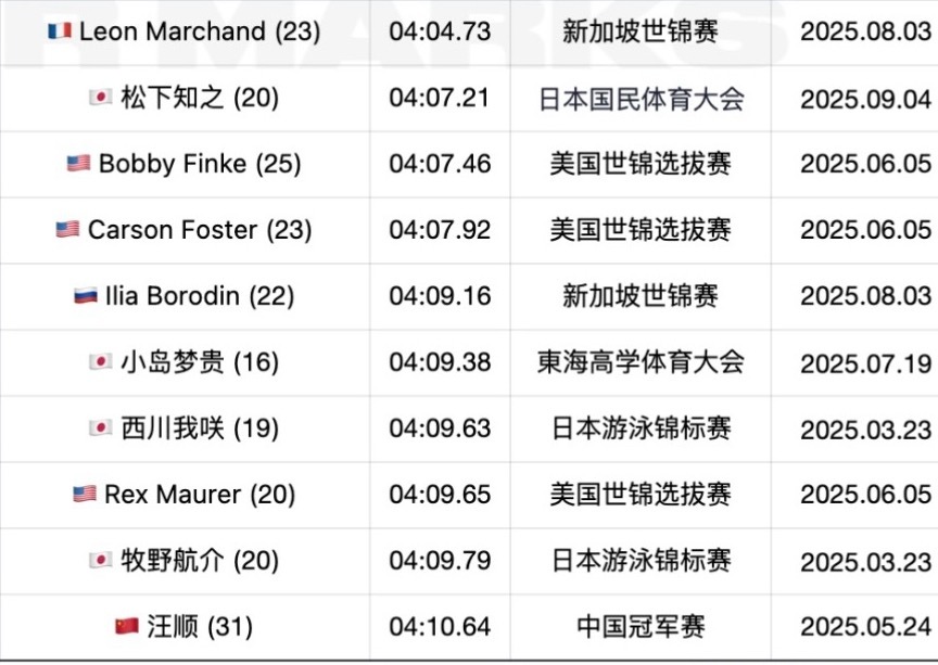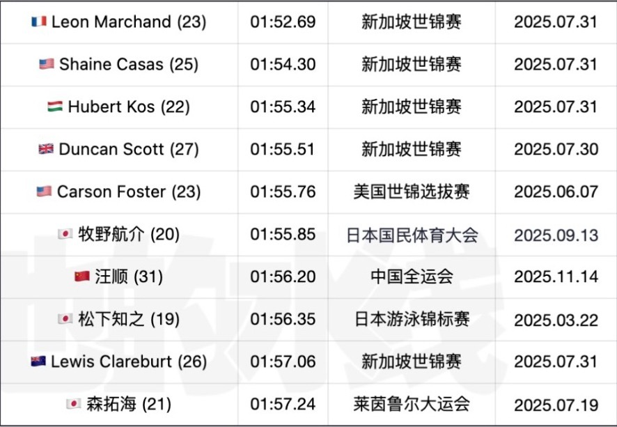 男子200混跟400混今年世排目前一共有5名运动员两项同时名列前十,汪顺是里面唯一一名30+。这一年欧巴真的很拼很拼,超级并且永远为你骄傲甬敢小兔