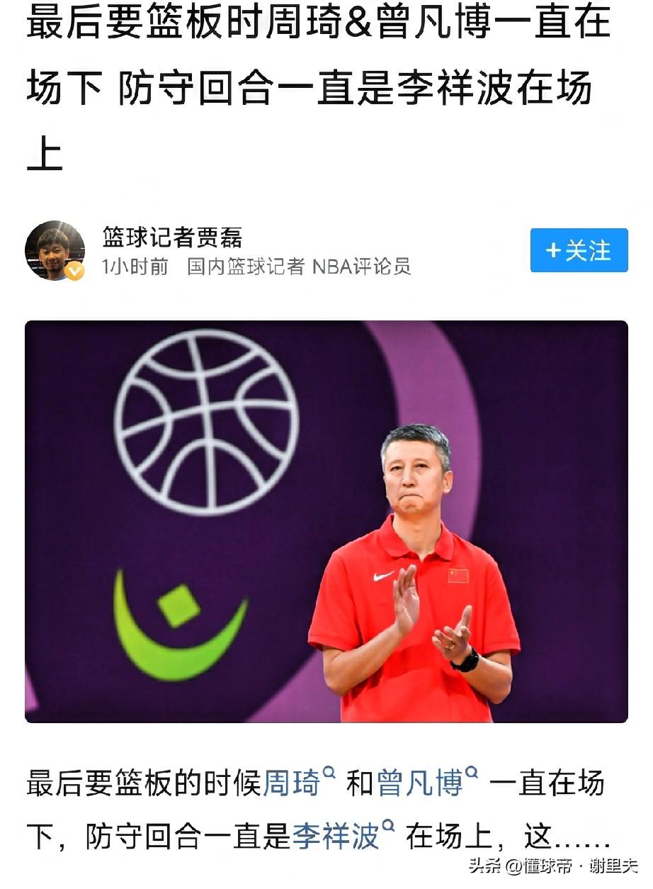 男篮4分输给韩国,篮球记者贾磊赛后对郭士强排兵布阵有质疑:最后要篮板时周琦曾凡博在场下,在连续丢篮板时,场上竟是李祥波,而胡金秋和张镇麟的搭档,最后四个篮板丢掉三个,匪夷所思,距离世预赛第二场比赛还有三天,男篮大名单要替换,我大胆建议,用徐杰换掉胡明轩,用付豪换掉李祥波,张镇麟和曾凡博都没有像王俊杰在低位持球进攻能力,可以同时出场,甚至周琦和胡金秋搭配双塔