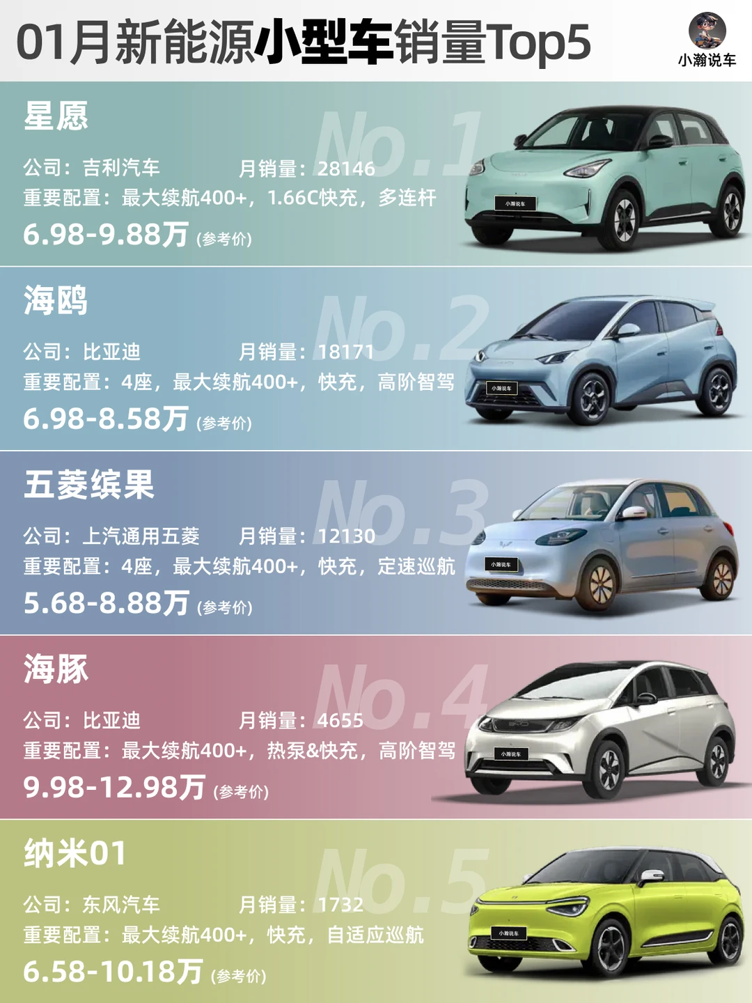 🌟小型车:吉利爆款星愿销量近3万升至No.1,间接导致比亚迪海鸥海豚销量均出现显著下滑!当然随着比亚迪“全民智驾”的发布,你觉得2月比亚迪能否抢回这个级别的销🏆呢?