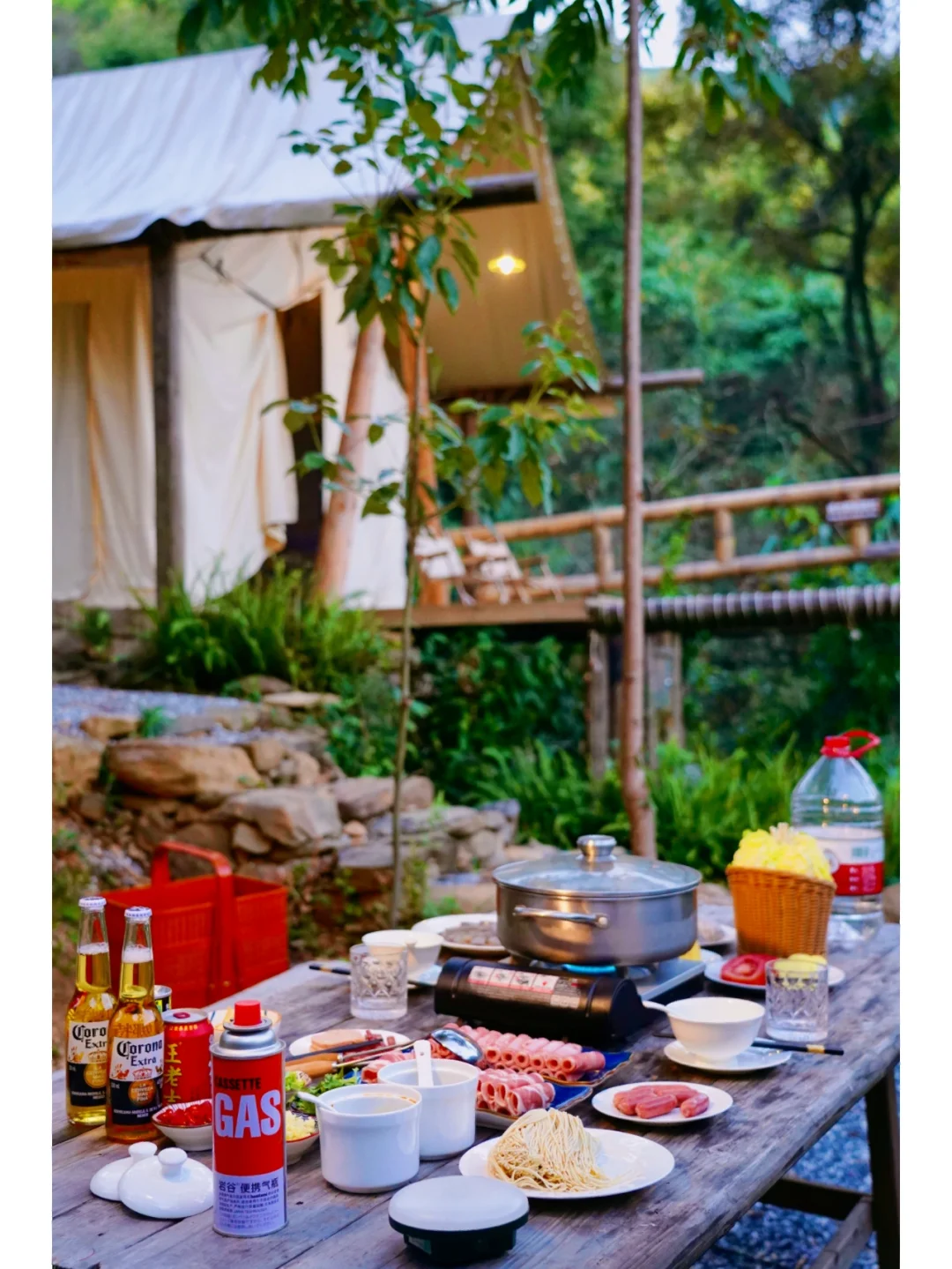 射箭、古树攀岩、丛林穿越、溯溪、玩水、捕鱼、庭院篝火、岩壁攀岩、峰林徒步、植物拓印、手工 DIY 、越野车、暗夜观星、热气球、田园骑行等