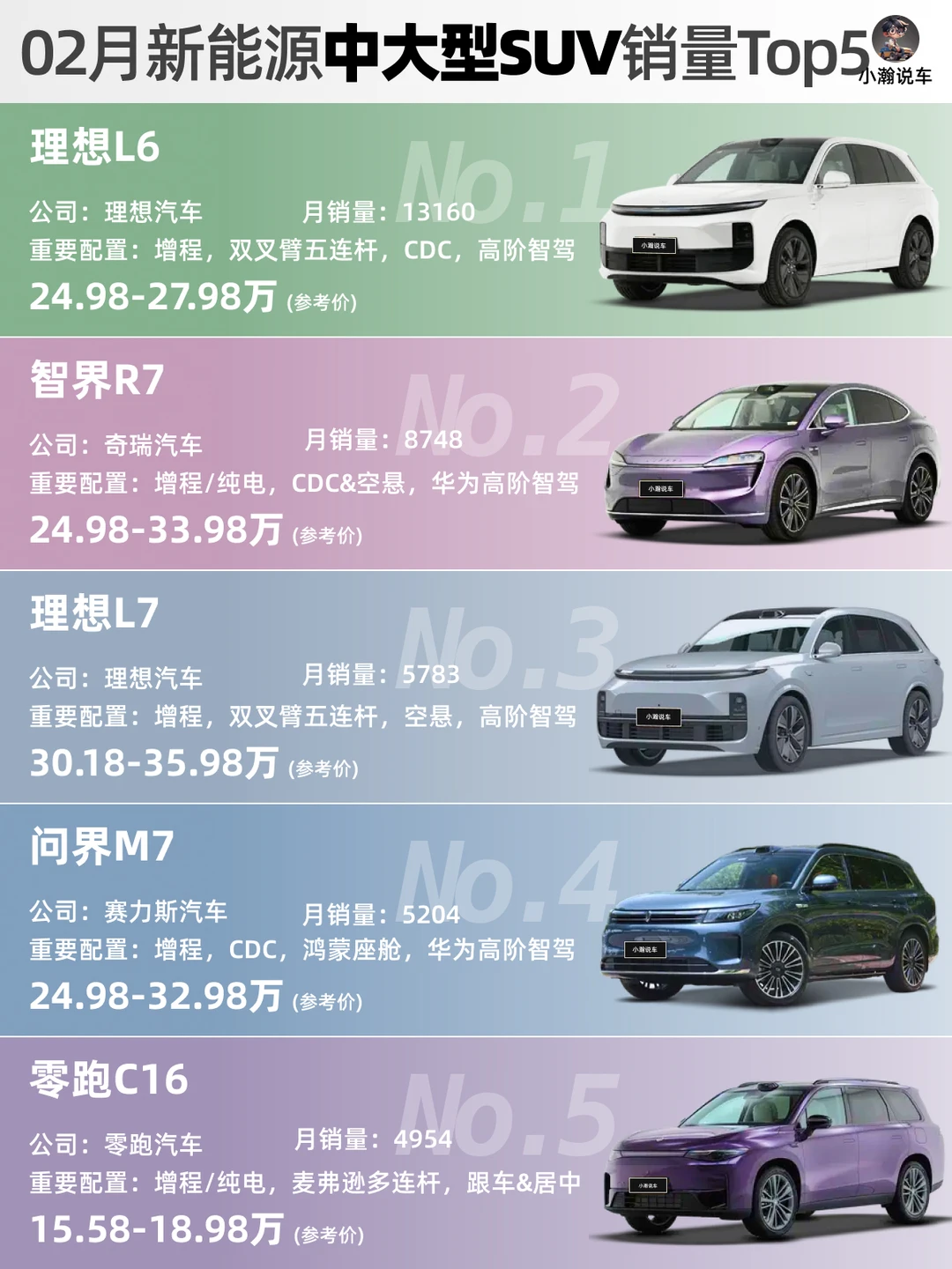 🌟中大型SUV:理想L6和智界R7继续占据这个级别Top2!问界M8即将上市,能否改变这个级别的格局值得期待!