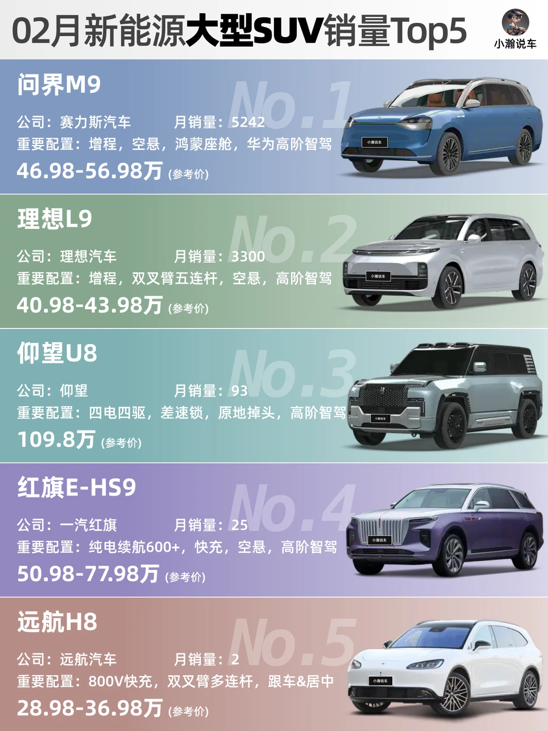 🌟大型SUV:问界M9的销🏆宝座依然很稳固,但腾势N9、领克900、极氪9X、深蓝S09甚至小米YU9等一众“9”系SUV已经跃跃欲试,你觉得谁有可能在销量上超过问界M9呢?