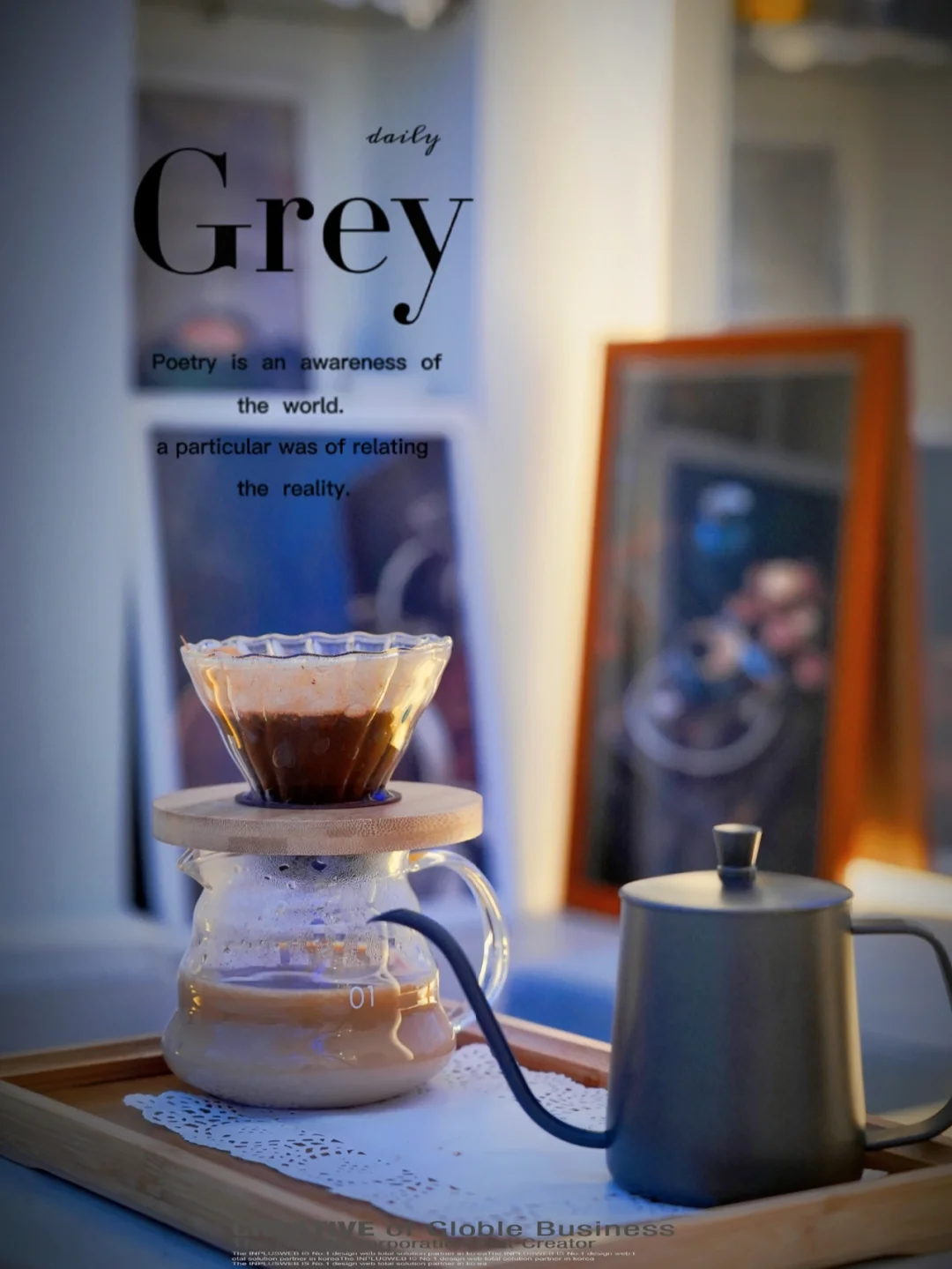 缓缓注入热水,看着新鲜的咖啡粉渐渐膨胀,香气随之弥漫到空气中~~