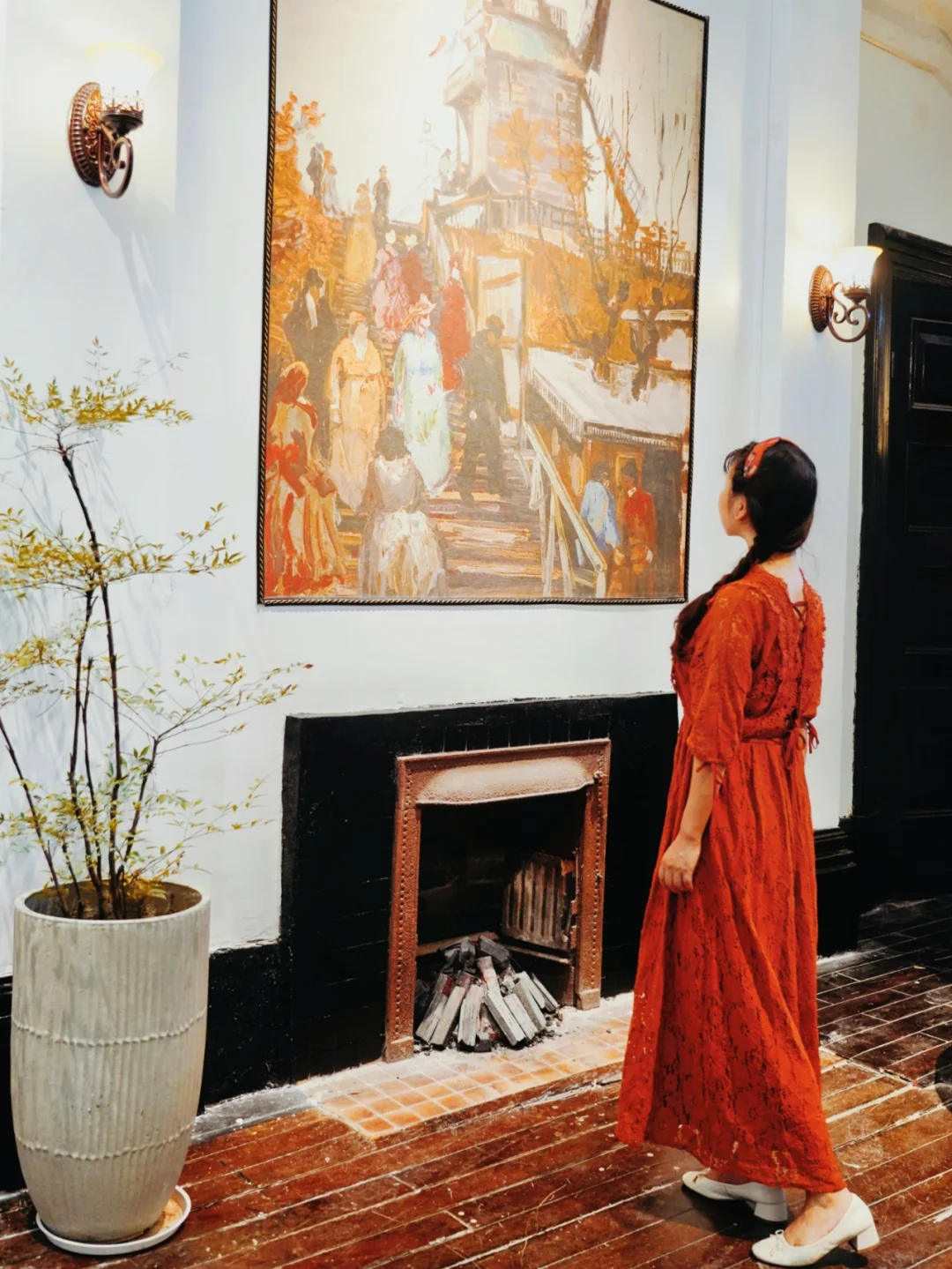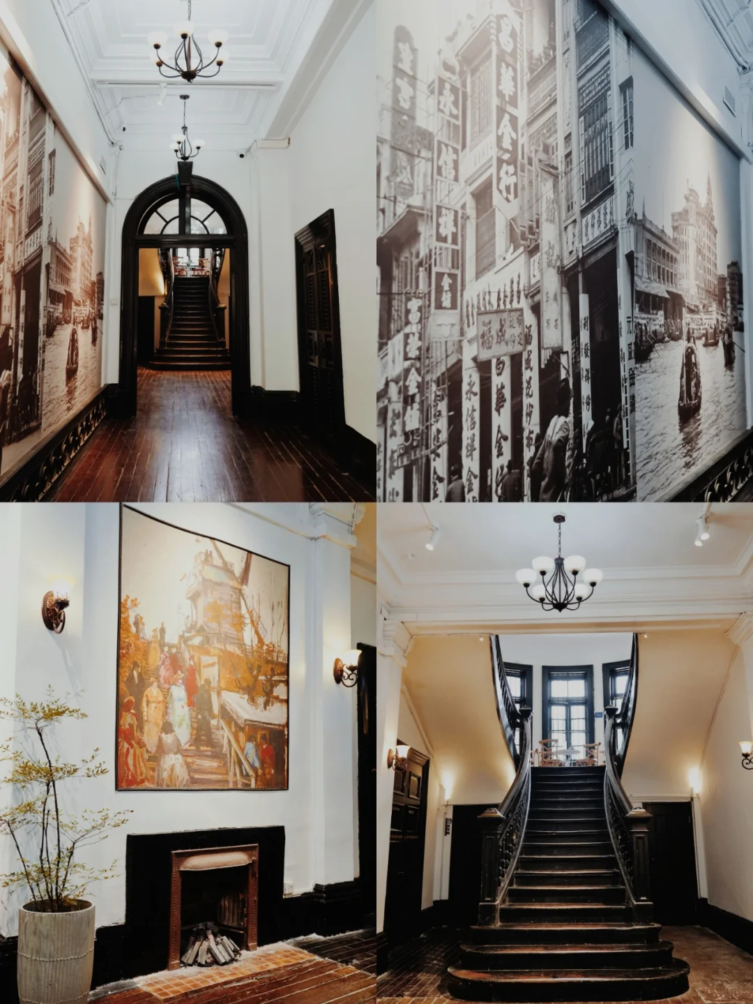 穿过走廊,复古的楼梯、油画、壁炉,又是另一种风格场景……