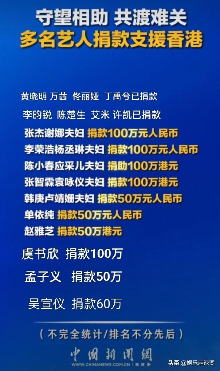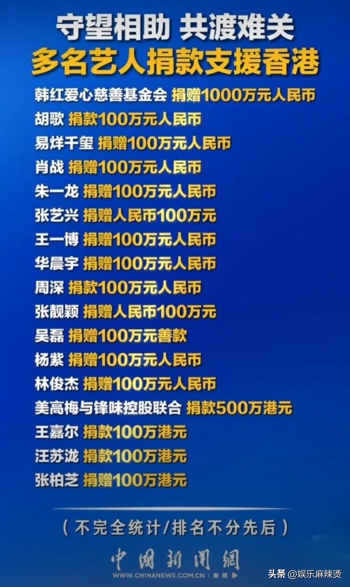 香港大火,众星特别是港星高调捐款,尽显社会责任和担当,但是也有一部分一线明星和港星,至今没有看到他们的捐款信息,比如赵丽颖,杨幂,刘亦菲,赵露思等国内艺人,周润发,成龙,古天乐,甄子丹,李连杰等港星,这让部分网友感到疑惑和奇怪。 依我看,部分未通过各种基金会和十字会捐款的公众人物和明星,虽然看不到他们的名字,可能他们已经低调捐款捐物了,亦或是真的还没有捐款,但是却默默关注事态发展。 而且,我发现有一些艺人虽然捐款了,但是却没有公开捐款数目,可能他们是不想因为捐款数目引争议。 无论如何,我们都不能通过捐款没捐款,或是通过捐多捐少来评定一个人,因为很多艺人做人很低调,做好事不张扬,毕竟善欲人见,并不一定是好事,而且,即便是捐一元钱,我认为这也是一种爱心,没必要打脸充胖子和攀比。
