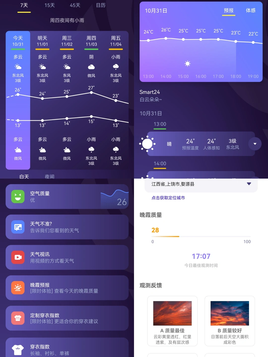 45天的详细预报及个性化的穿衣指数,让我可以提前就准备好出游的衣服