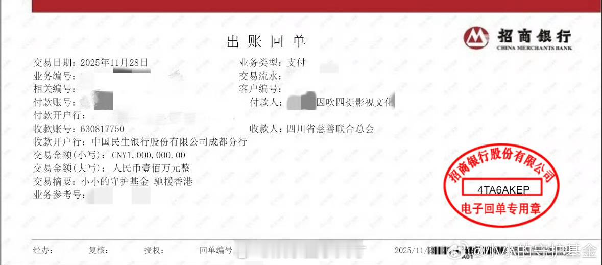 田栩宁 感谢华策携手田栩宁通过韩红基金会捐赠30万支援香港救援。感谢Metal