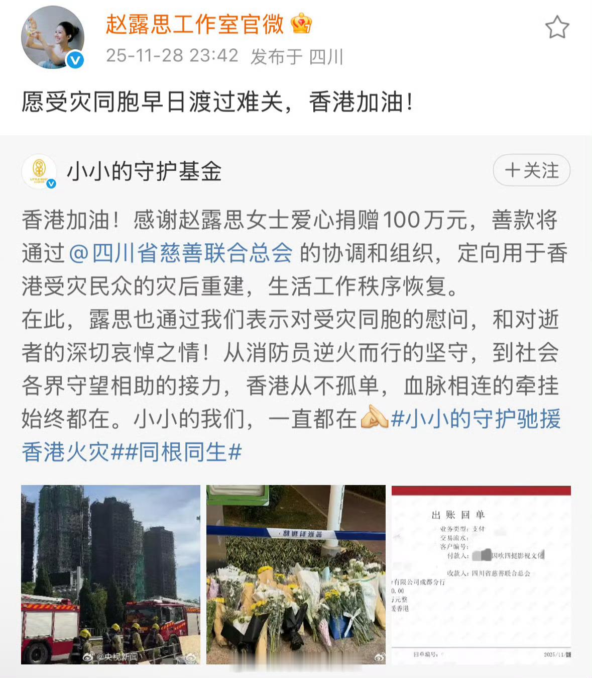 赵露思 赵露思捐款100万助力香港灾后重建,我就知道她会出动,感谢露思,香港加油🙏🏻