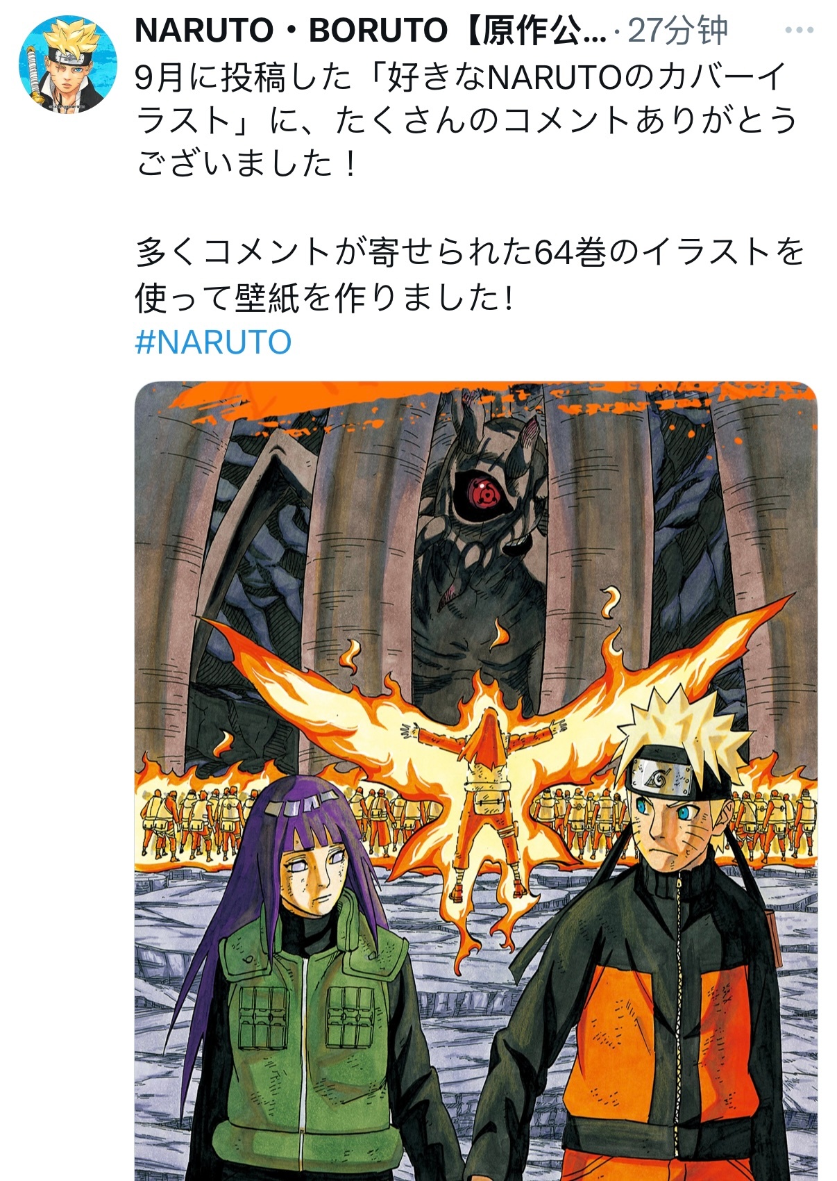 『火影忍者官方』最新发布的26周年纪念壁纸!鸣人 & 雏田 壁纸出自第64卷封面 火影忍者鸣雏