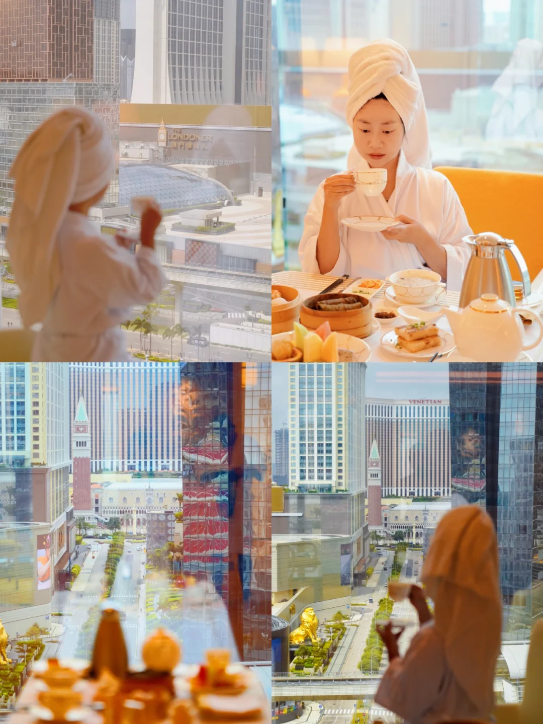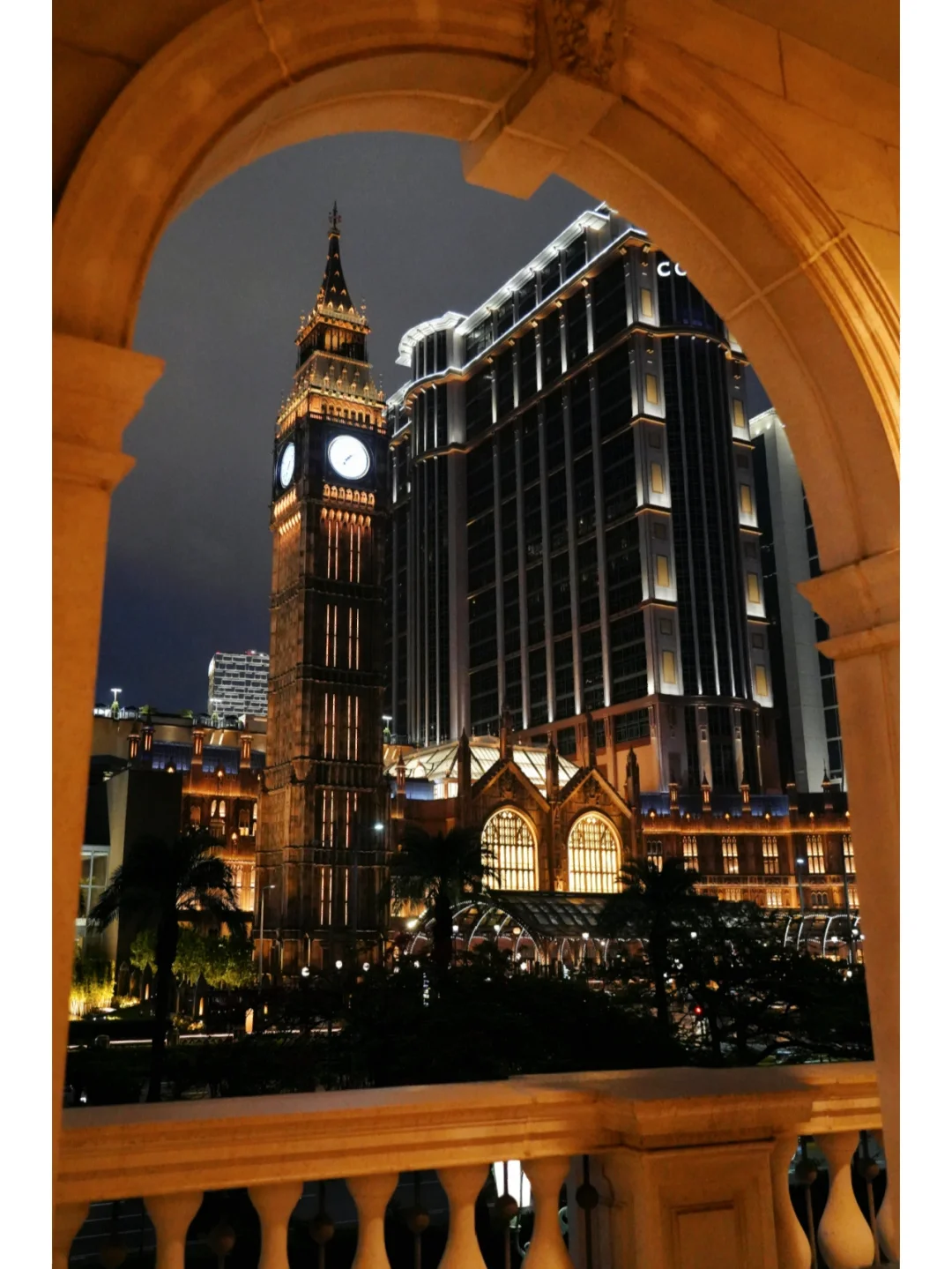 远眺澳门天际线,近赏迷人表演湖音乐喷泉;金碧辉煌的设计,繁花锦簇的商场,满满宫殿风