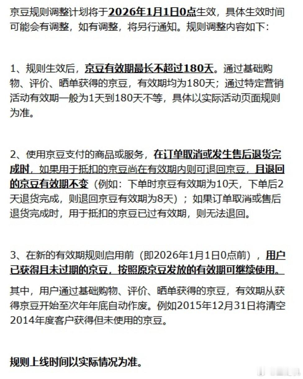 京东宣布 2026 年起调整京豆规则,有效期最长 180 天,之前获取的京豆次年底自动作废,你的京豆都用完了吗?