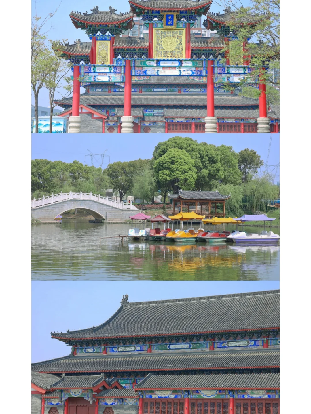 可以游船野餐,还有一片紫藤花和黄秋英,并且有几处古风建筑很适合拍汉服旗袍