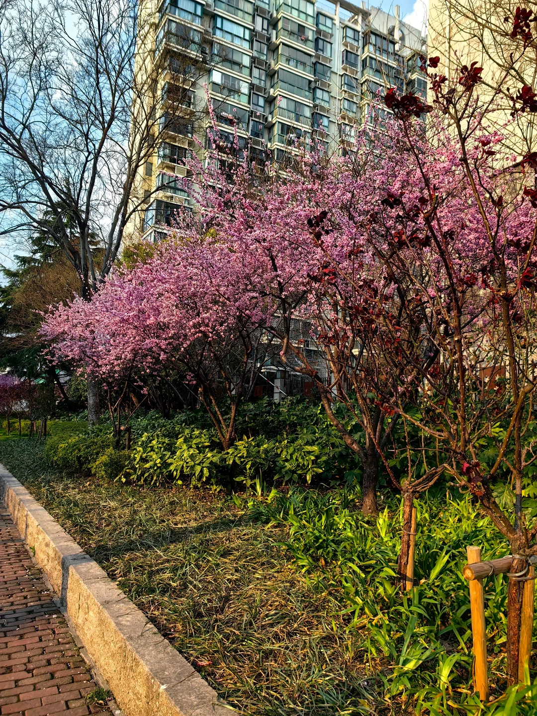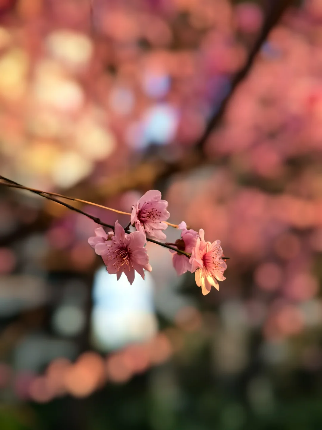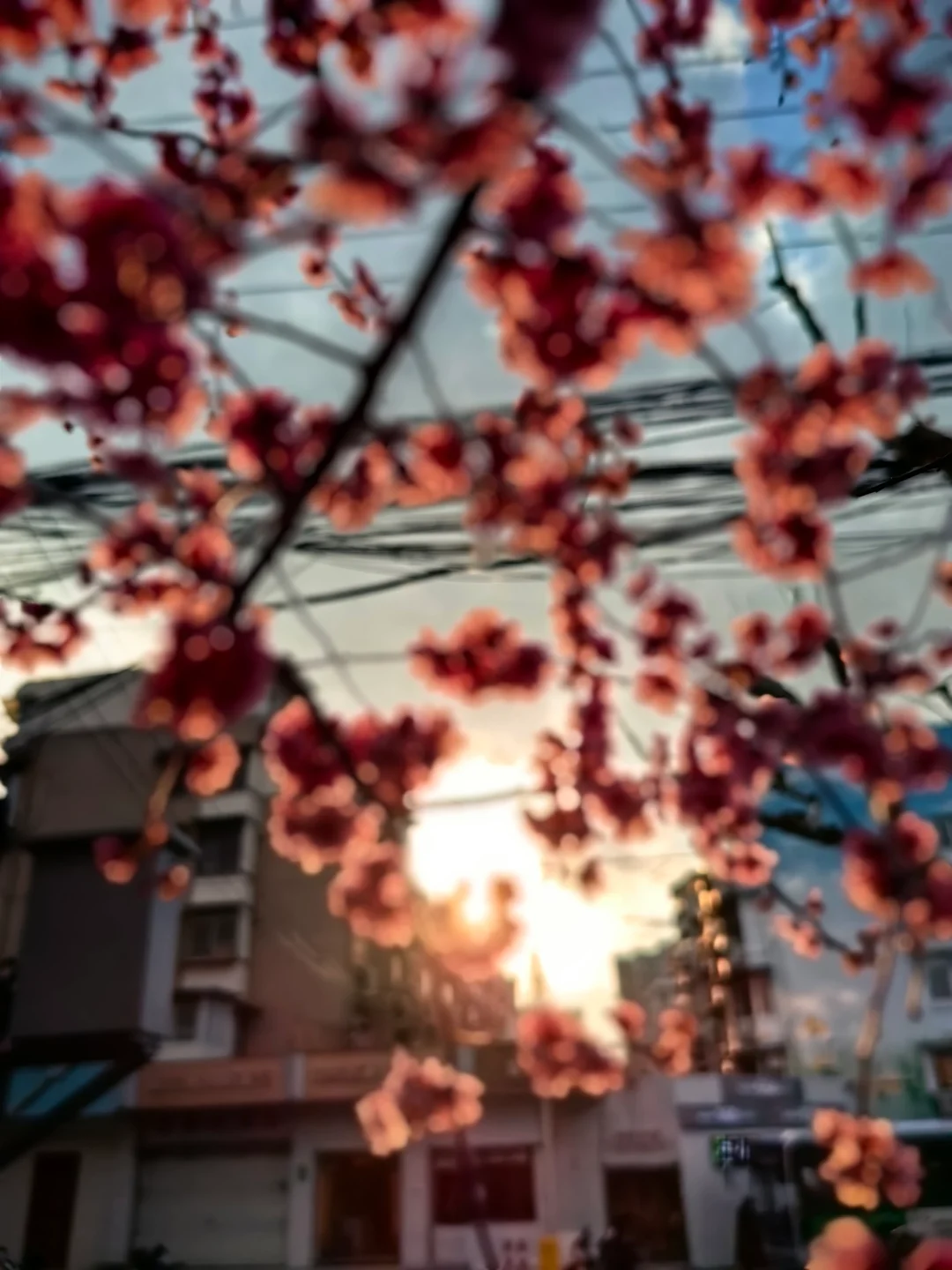 笑☁ 美人梅盛放,差点错以为是哪个品种的樱花🌸 开得如此热烈,高低也拍一下 前后就五分钟五分钟公园效应 这不就达成了 小区门口沿马路花坛也就这个月醉美了 娃爹看着来来往往的人,觉得自己要社亖 速度拍完速度溜 🥰 不过夕阳下的美人梅也不辜负欣赏它的人呀