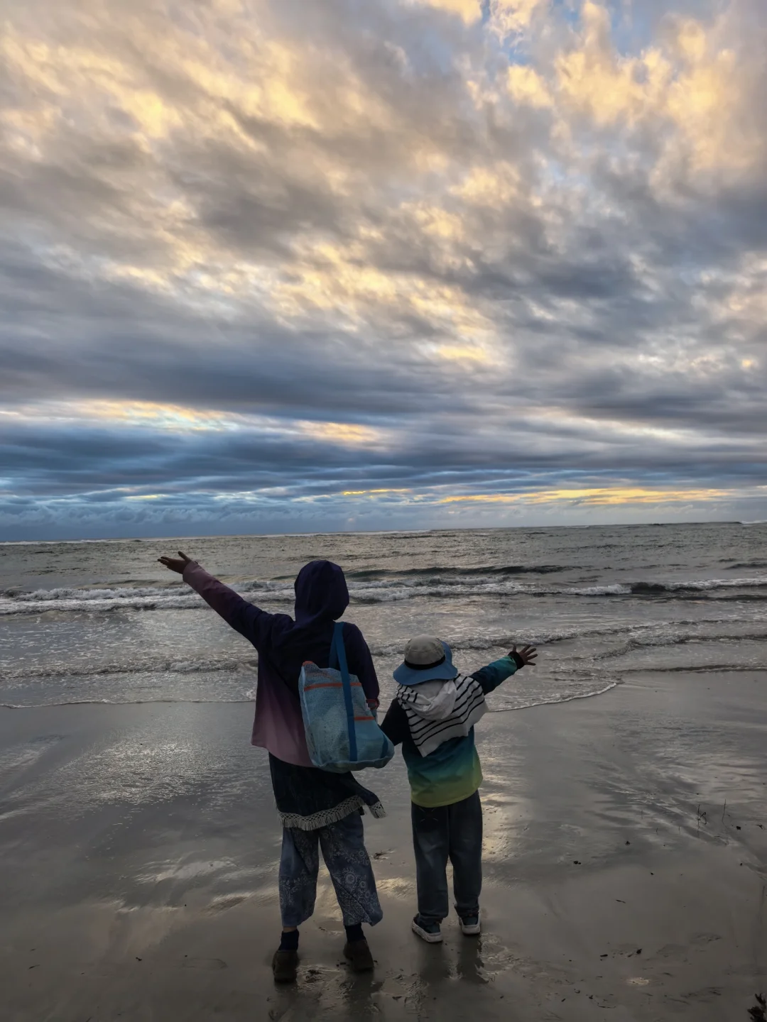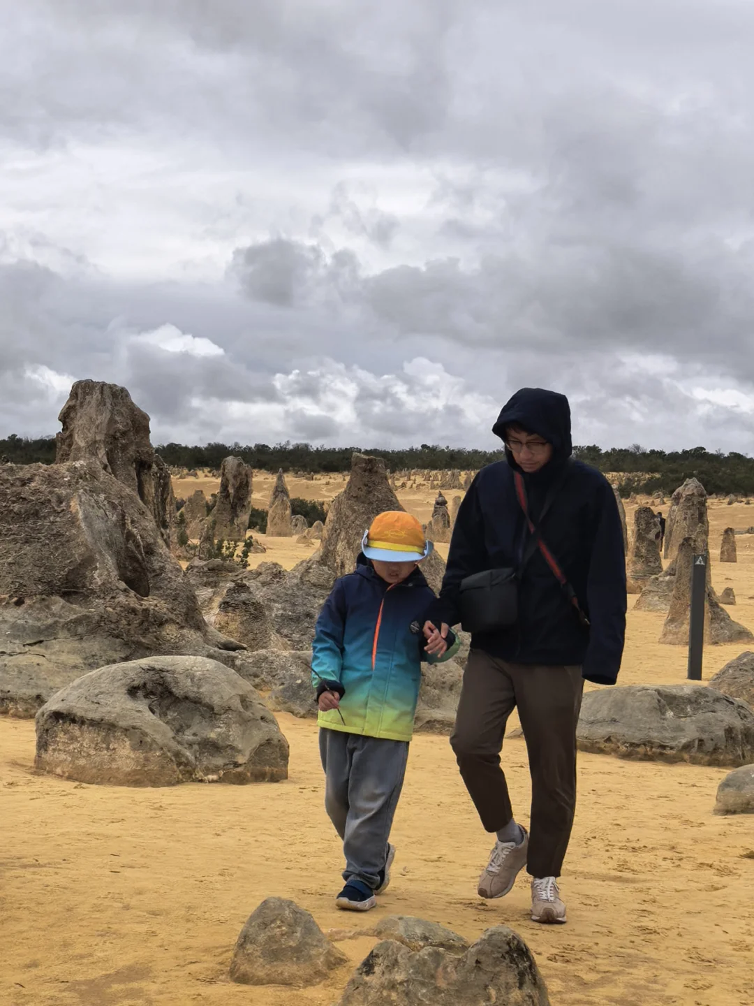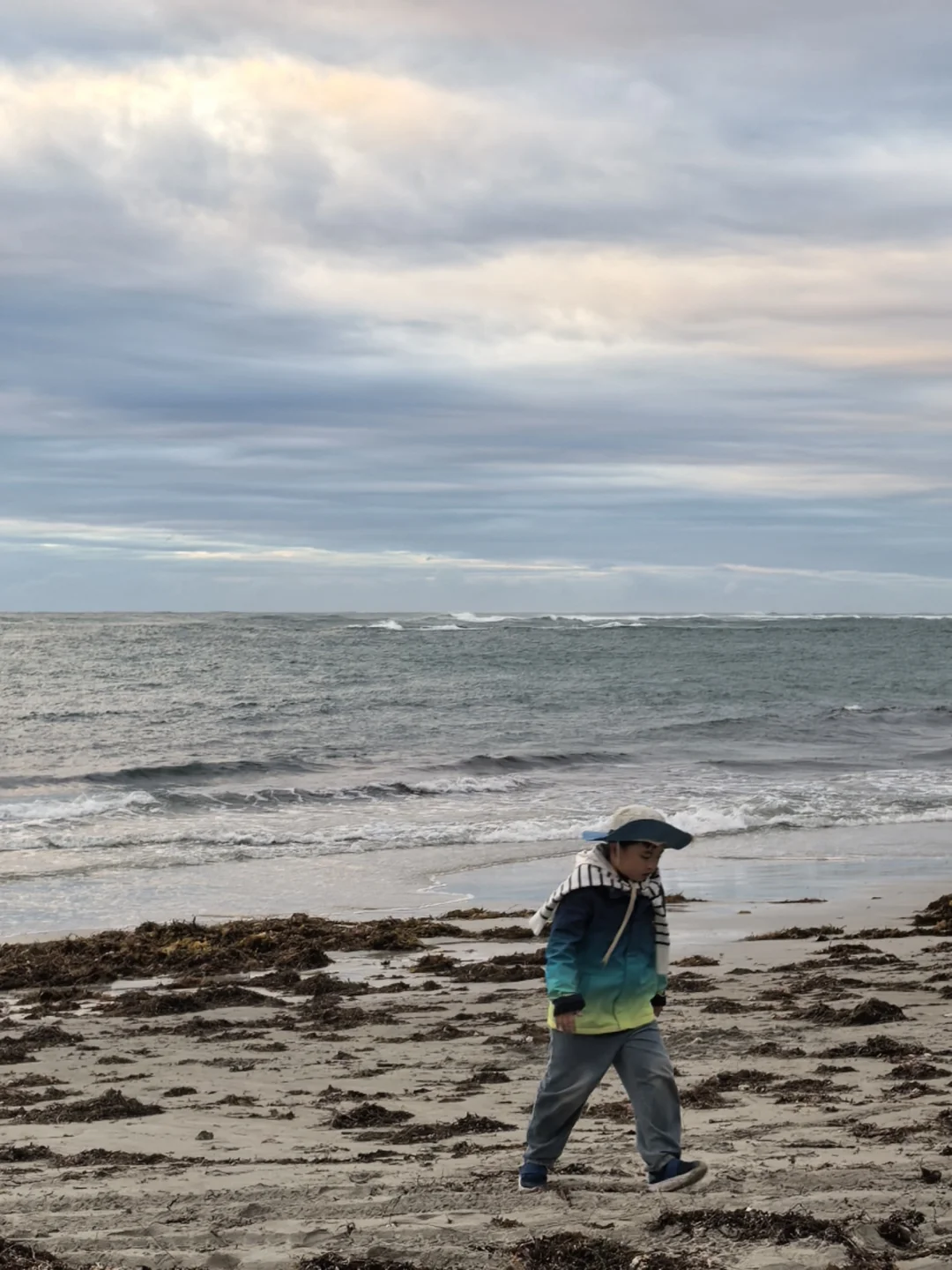 阴雨天出发,继续北上👆,从Woodridge→Horrocks,4个小时车程,住的是房车营地小木屋,方便玩水玩沙。不过阴雨天海边会冻出鼻涕泡😅