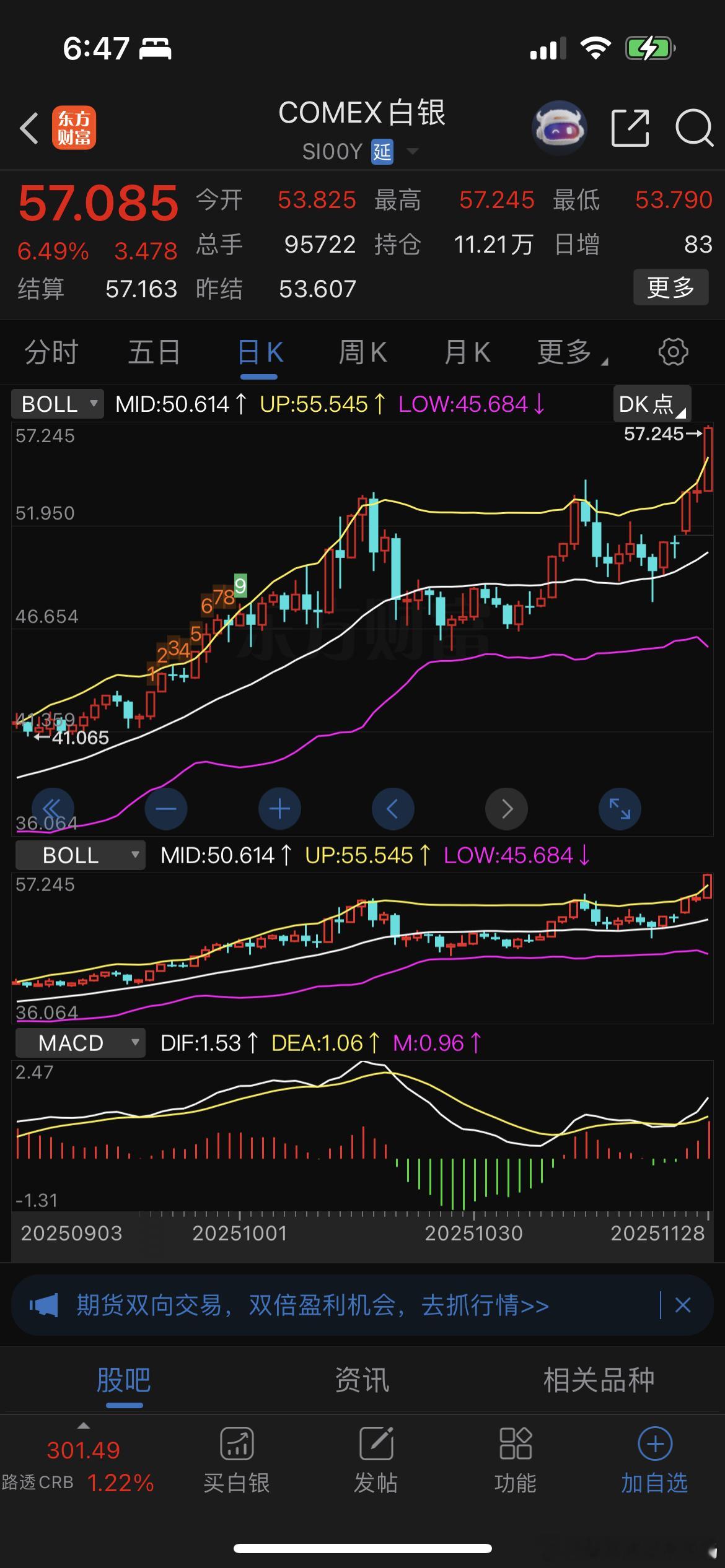 贵金属大幅走高 期货白银突破57美元创历史新高 期货黄金突破4200美元