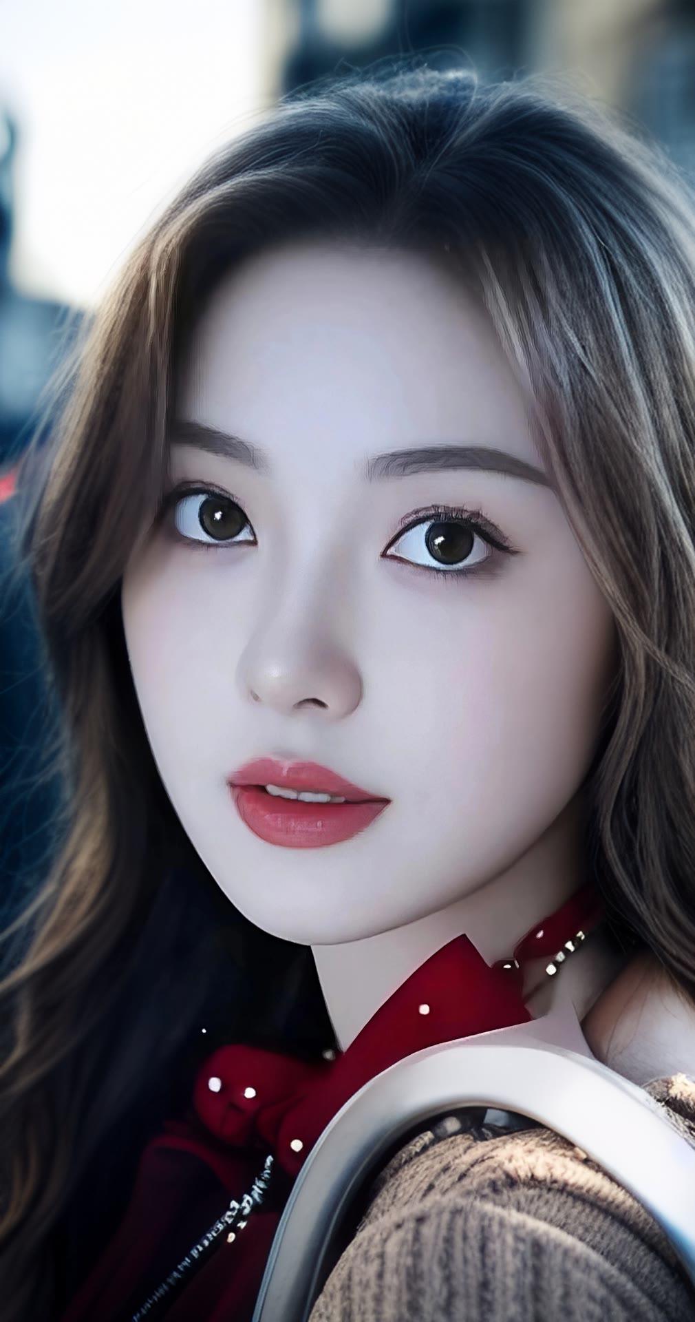 温柔甜美的少女,红唇与发丝相映成趣,散发着迷人的魅力。