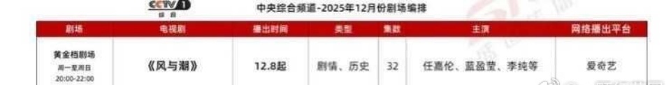 各卫视,四大平台12月排播剧集,最期待哪一部?CCTV8🥝任嘉伦、蓝盈莹、任素
