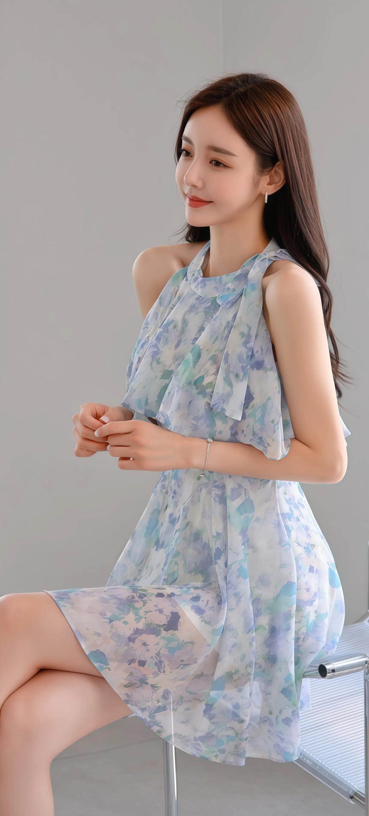 温柔甜美的灰色连衣裙,搭配自然妆容,尽显优雅气质。