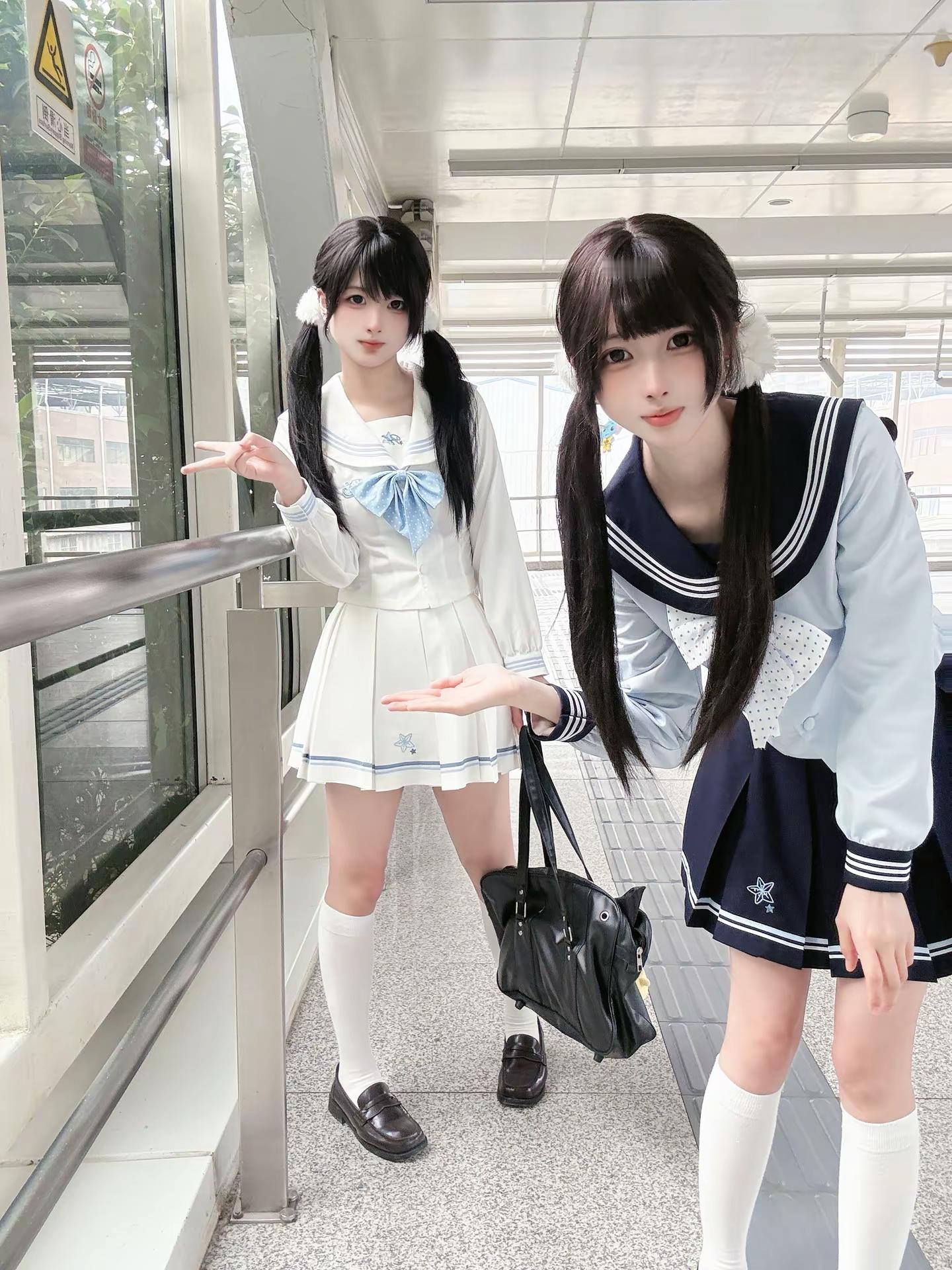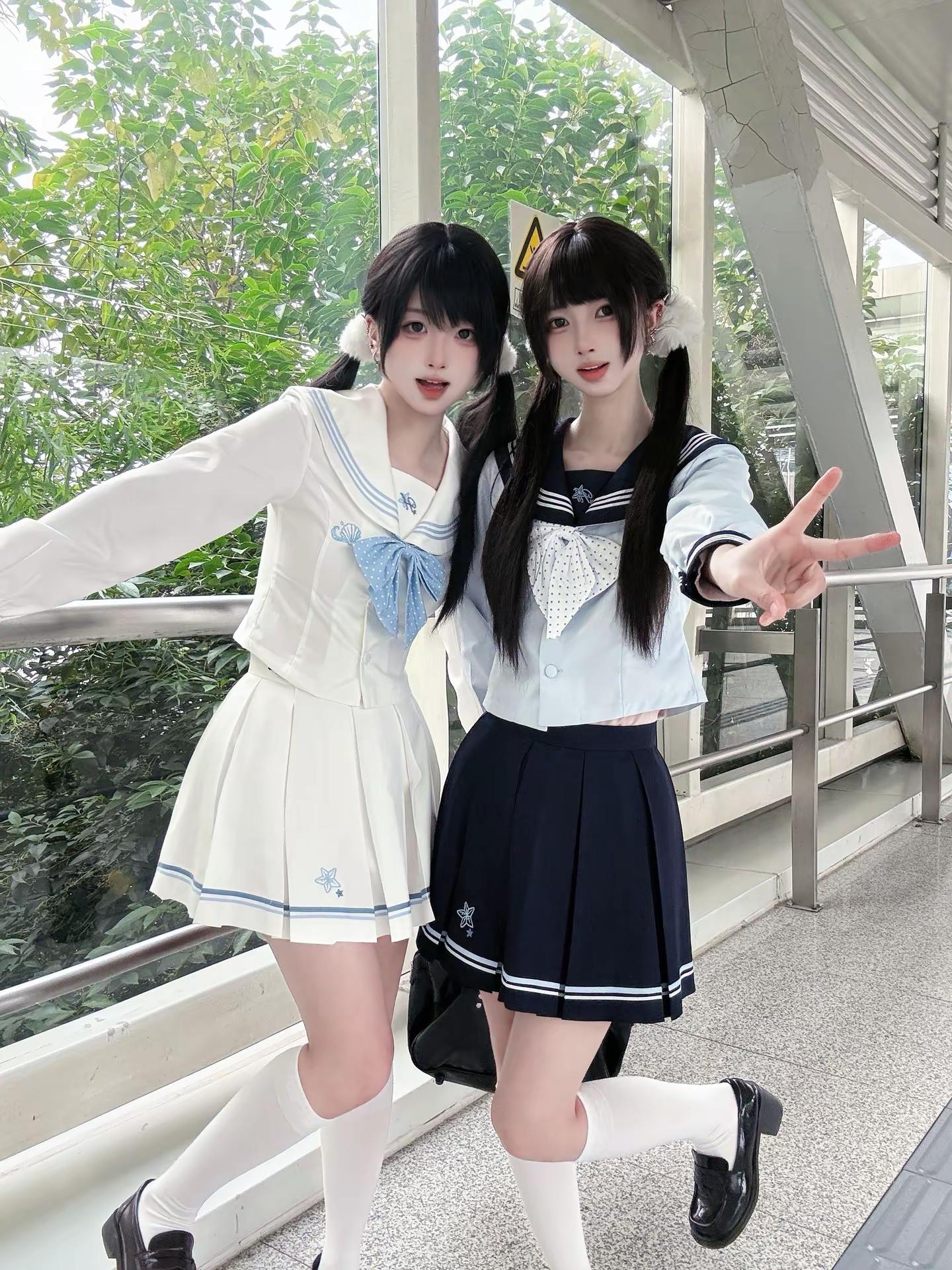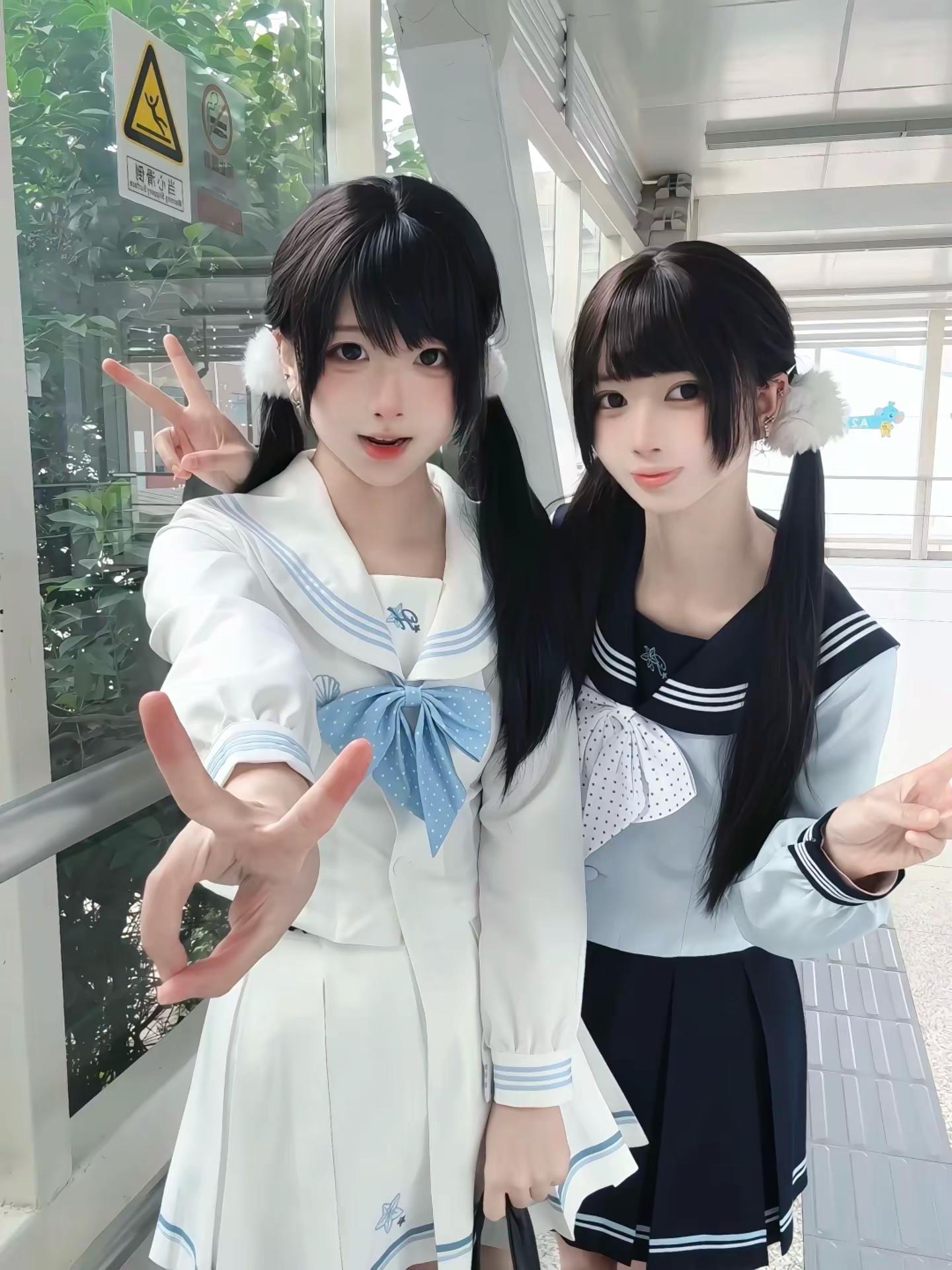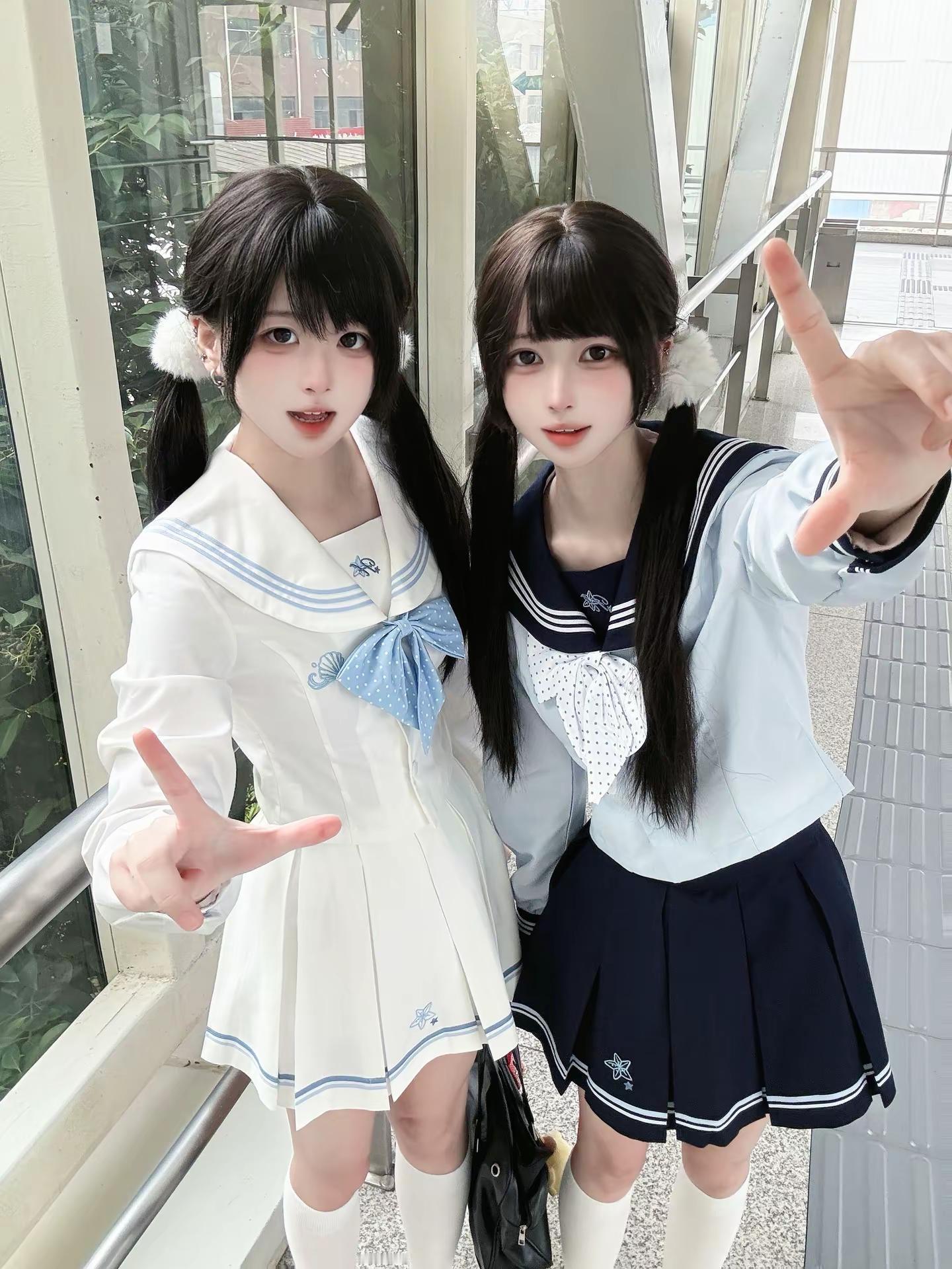 (ˆ꜆ . ̫ . ). ̫ . ꜀ˆ)jk制服 水手服 双子穿搭