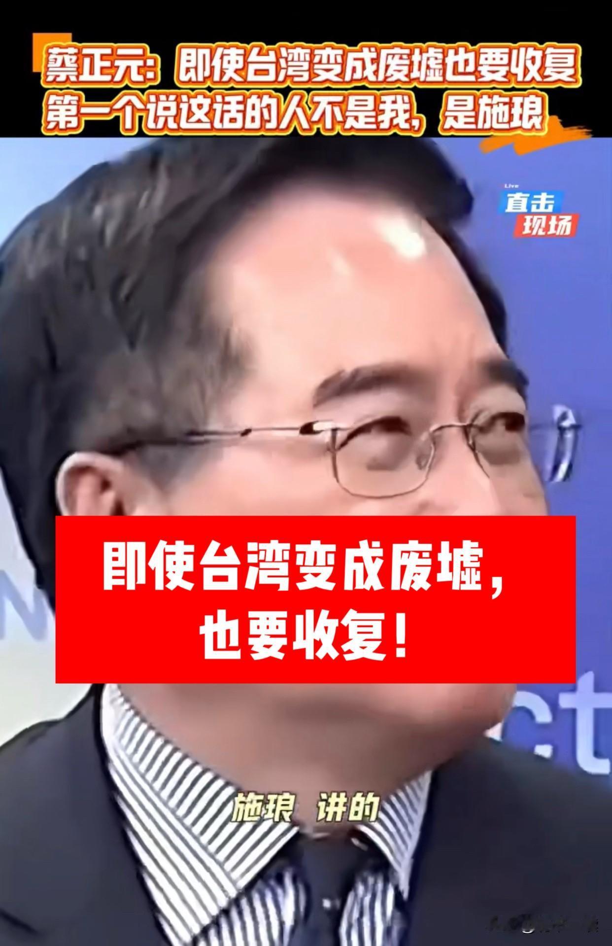 “即使台湾变成废墟,也要收复” 施琅342年前一语封神。如今收复台湾势在必行,谁做第二个施琅,谁就是中华民族的民族英雄,必将永留青史! 施琅上书康熙,一句“收复台湾,东南半壁始安”,把民族大义刻进山河。如今蔡正元直言“哪怕台湾变成废墟,也要收复,第一个说这个话的人不是我,是施琅!” 现在谁能做第二个施琅?必然是青史留名的民族英雄! 当年施琅力排“弃台论”,率300艘战船血战澎湖,硬生生把分裂的台湾拉回中国版图,凭的就是“领土寸土不让”的执念。 看看真实图景:台湾网红“馆长”跨海打卡大陆,万千台胞来江苏创业扎根,这才是民心所向;可民进党一边编“茶叶蛋是奢侈品”的谎言,一边把宝岛绑上分裂战车,真要让台湾变成废墟?14亿人不答应! 法律已定调,历史不可逆——台湾光复纪念日写入法律,80年前的胜利绝不能被篡改!统一不是选择题,是必答题;不是“能不能”,是“刻不容缓”! 谁护领土完整,谁就是民族英雄; 谁敢分裂国土,谁就是民族败类!