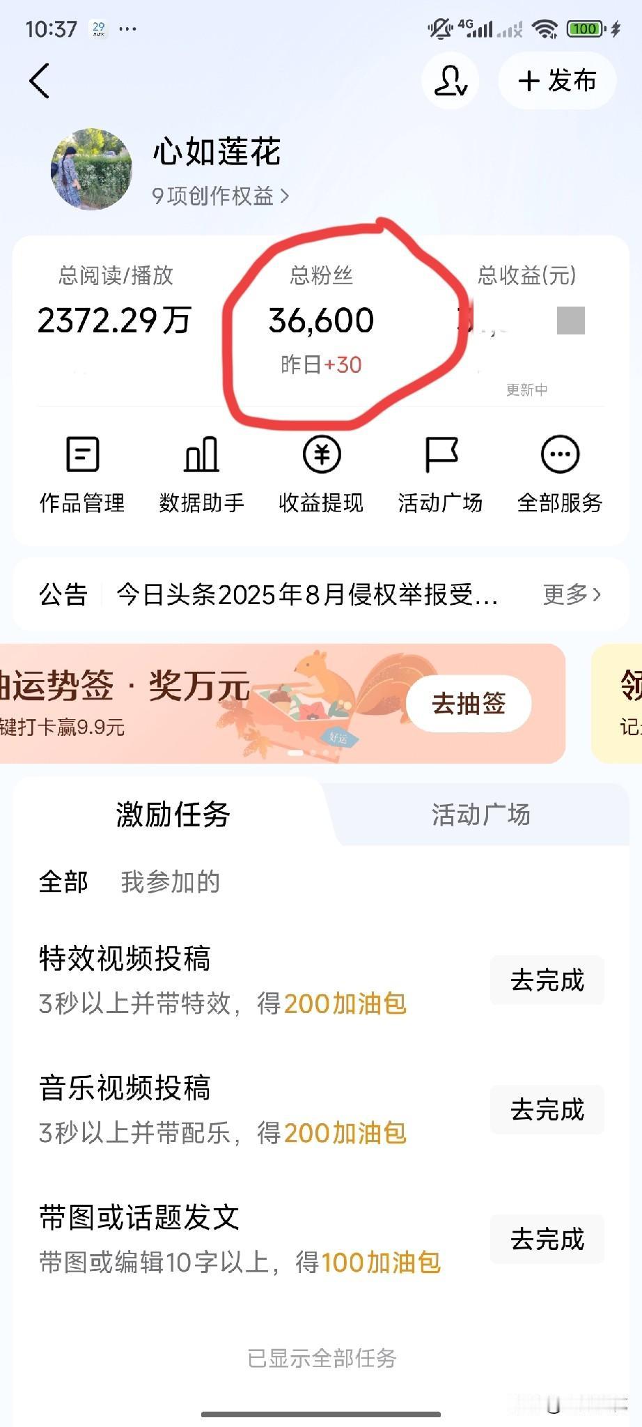 是我的作品有问题吗?昨天一天涨粉30多,我删和回关都来不及,曾经我也是一篇文章一天最高赚460多,最少100多的人,这都几个月了,每天给我最多一千多的展现,阅读量比,远超推荐量比,我都懒得问客服,问了也是白问,是因为我老了吗?还是因为我抵制了一些歪风邪气,就遭到了限流?真的搞笑,从现在起,我也放弃维护平台秩序,我也向前(💰)看。管球你平台爱咋滴咋滴。