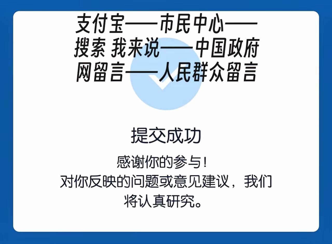今天学习到了如何合理合法的建议, 打开支付宝, 找到市民中心, 然后搜索 : 我来说, 找到中国政府网留言, 人民群众留言。 合理合法提出建议, 写出我们自己的心声, 这样就可以了。 虽然我只是小老百姓, 但是我也是中华民族的分子。 我爱国, 我无时无刻都希望我们的祖国繁荣昌盛, 希望我每个人都平安顺遂。 做一个合法守法的爱国公民, 这是必须的。