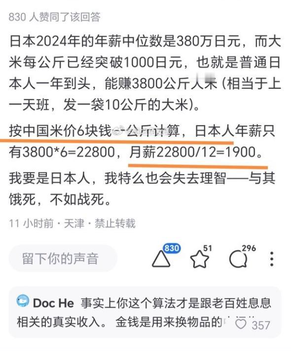 日本普通人一年的工资,可以买3800千克大米。博主一年工资到手8个W,按照6元一千克大米计算的话,可以买13000千克大米,哪怕是买贵一些的大柜,10元一千克大米是好大米,也可以买8000千克大米。但是博主的收入,在国内只能算是中等,比上不足,比下也难说多好,反正是普通人的水平。 也许你会说,通过大米来辨别经济发展水平,是不客观的,但是博主要说,以大米作为购买力,来判定经济发展水平,已经是最客观的了。因为货币强与弱,就看购买多少食物和大米,大米作为硬通货,从古至今,都是可以衡量物价的,毕竟没有别的食物,来反映真实的物价水平。 总体而言,博主这样的普通人,绝对比日本的普通人,过得要舒服,因为买到的食物会更多。就像同样的工资水平,我们买到的大米更多。在平常的时候,就不用为吃大米而感到烦恼,你就像日本现在吃大米,都是要定量限量的,不能敞开吃。而在国内,你想吃多少大米,随便可以吃。 简单来说,博主所在的山东,有一种重要的食物叫排骨米饭,20元一份,排骨有三四块,但是米饭畅吃,你吃三五碗米饭都可以,随便你吃。但是在日本就不行,博主看过日本有一份鸡肉饭,就是说鸡肉可以加一点,但是米饭不可以加,加米就得加钱,就证明了大米是比较昂贵,但肉类却没那么昂贵。 所以总体而言,用大米作为物价衡量的话,国内生活的确实比日本普通人,生活的要舒服一些,这是不争的事实。你要说咱们普通人和日本富裕的人士去比,那没法比,就比普通人的生活就好,比中产阶级的生活水平。