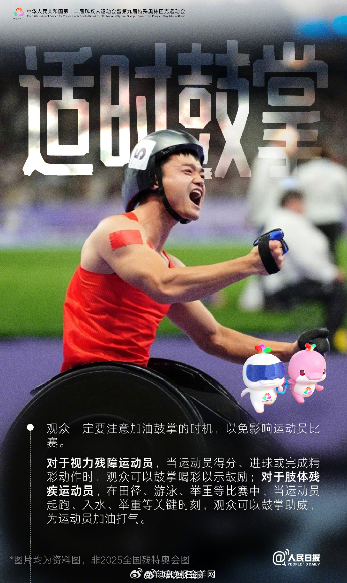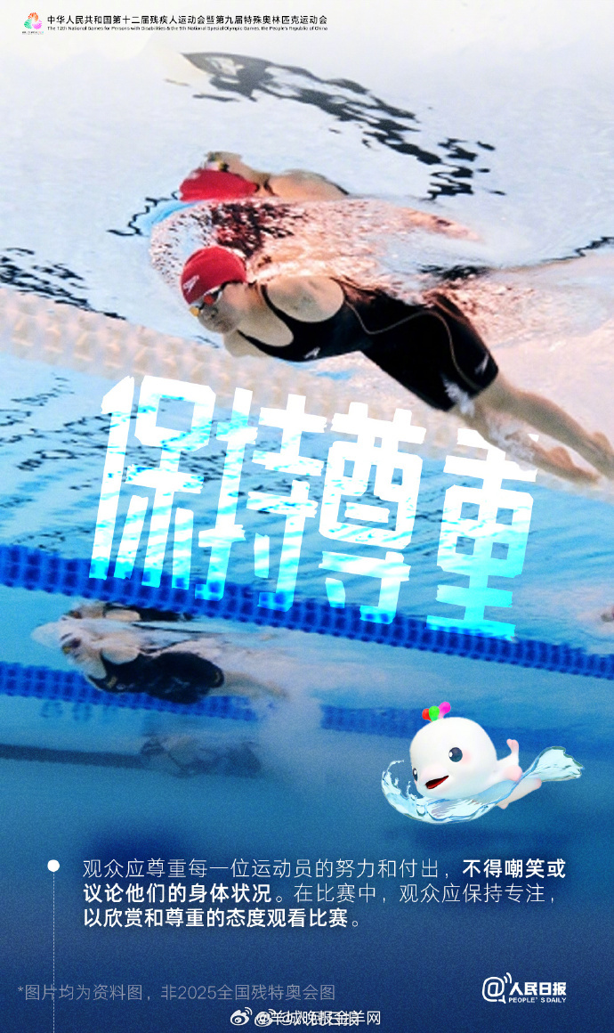 【收藏!#残特奥会文明观赛话你知#】2025全国残特奥会即将开幕,你知道观赛的基本礼仪吗?哪些项目需要保持安静?哪些时刻可以鼓掌喝彩?登场时,用掌声致敬勇气;拼搏时,用目光凝聚支持;胜利时,用拥抱传递感动。一起,为拼搏喝彩!#残特奥何时鼓掌才合适# #全国首个残疾人铁人三项#