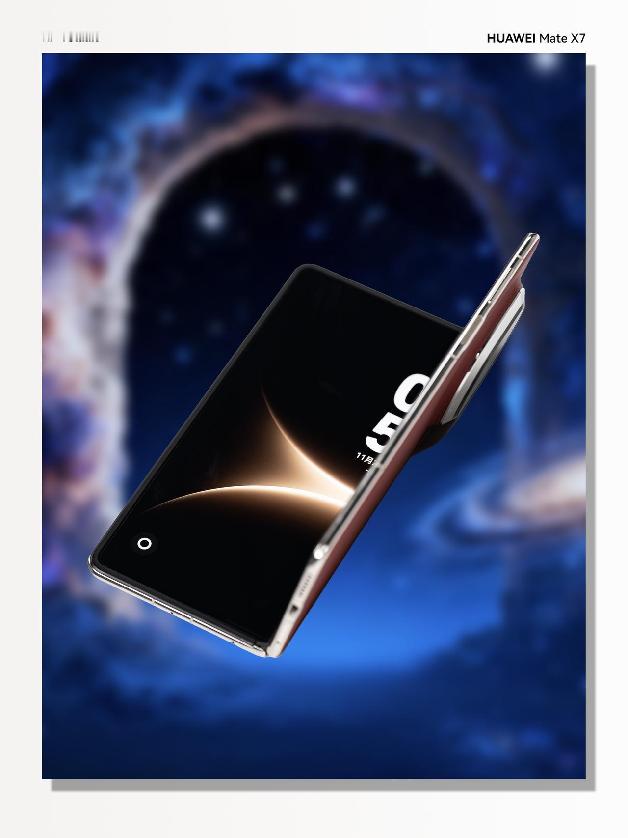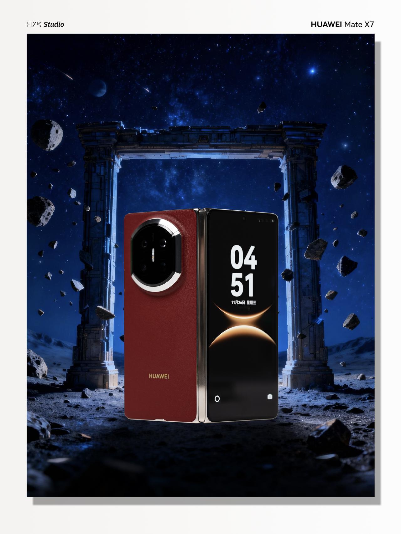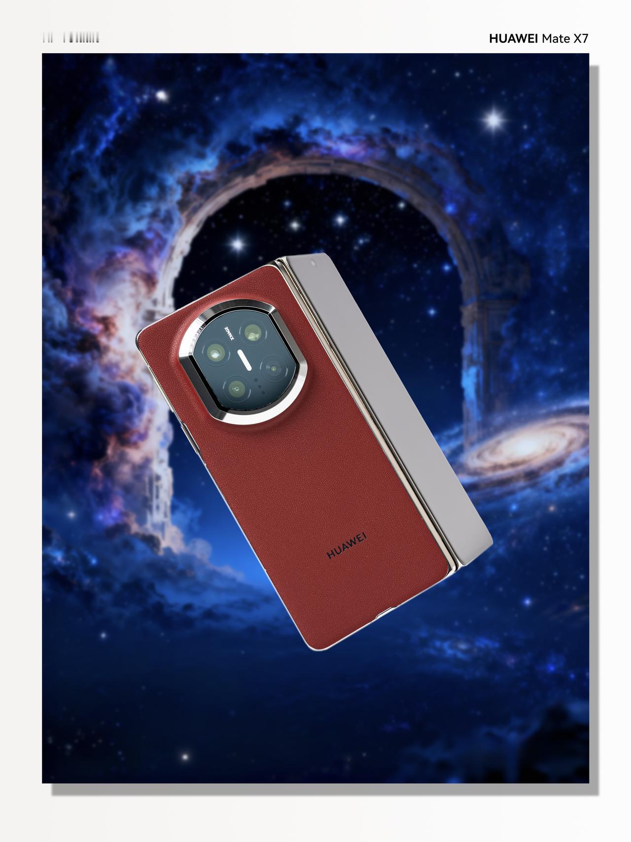 HYK图赏|华为Mate X7 这款是寰宇红配色,后盖融入了非遗云锦工艺,摸起来是素皮的质感,观感很高级,镜头Deco采用多维曲面与立体晶切融合而成的全新“时空之门”设计,看起来会更有层次感。整机展开厚度4.5mm、折叠厚度9.5mm、重量235g左右,手感也很不错。售价12999元起。