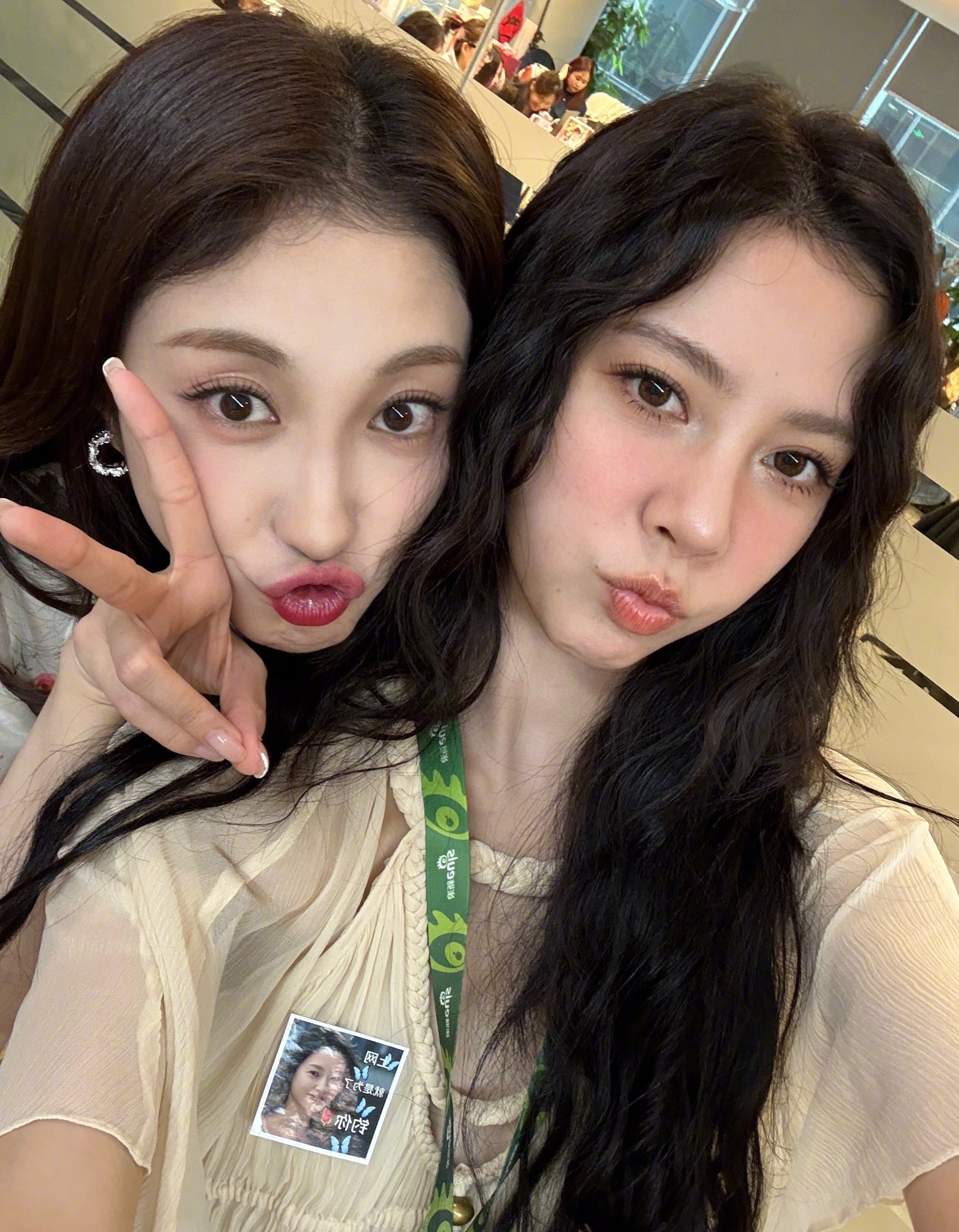 高圆圆旁边这是谁啊??身材好好啊,就是这个裙子的布料……