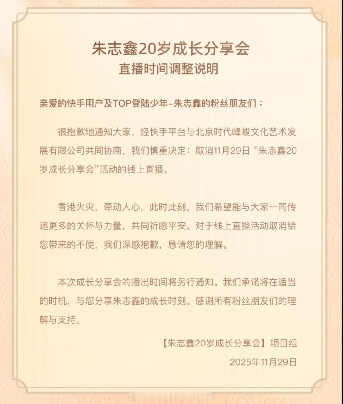 取消直播了,也能理解。朱志鑫生日分享会线上直播取消朱志鑫成长分享会直播取消