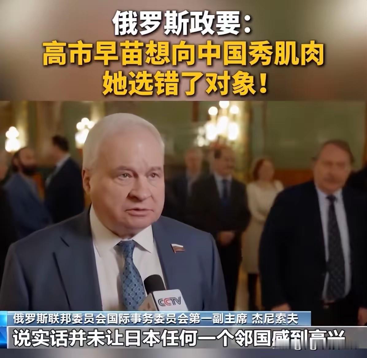 2. 俄政要锐评高市早苗:找中国秀肌肉选错对象:俄罗斯政要杰尼索夫、扎哈罗娃锐评日本首相高市早苗将“台海有事”与日本“存亡危机”捆绑、呼吁自卫队转正规军、暗示放弃“无核三原则”等军事外交冒险,认为其挑战二战结果、选错秀肌肉对象(中国),俄因维护战胜国利益和远东安宁与中国外交联动施压,实则维护自身利益。