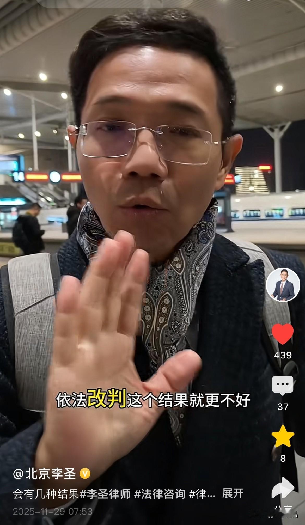 李圣律师预测王某晶雇人殴打律师一案有三种结果,最后一种最不能接受,关于自己被打一事如果可以重来,他会选择正当防卫。 第一种是不准撤诉,然后发回重审。这个结果也是李律师最希望的,他认为重审可以让王某晶这帮人故意伤人、非法入侵居民住宅、非法获取公民信息、寻衅滋事等罪行得到公平公正的刑罚。 第二种是维持一审原判,换汤不换药,王某晶雇人打人这事就只能被判一年9个月,其他的罪行,藏在背后可能关联的人和事没有得到追查,公平公正没有得到彰显。 第三种是准许撤诉,这是李律最不想看到的结果,王某晶撤诉获许的话,意味着要依法改判,改判只能往低的改,这无疑是最坏的结果。 李律师懂法,当街被殴打至三根肋骨断裂,当事第一反应是依法维权,没有进行回击。可李律被问到,如果重来一次是否会回击时,他说他会选择正当防卫。或许是对当下王某晶罪行得不到公平公正刑罚的无奈,起码当时回击能更直接保护到自己不受到更大的伤害。 坏人就要得到合理的处罚,好人权益才能被保护,公平公正才得以彰显,支持李律师维护正义,推动阳光司法向前走。