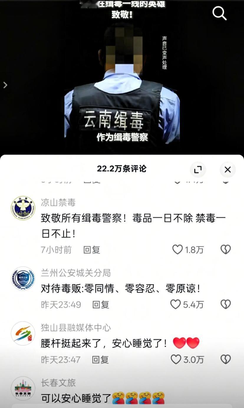 最近全网都被一件事牵动着心弦, 全国各地的文旅、公安系统突然齐齐发力, 全都在为禁毒发声, 这场面真是前所未有的整齐。 昨天一整天心里都悬着,刷着各种消息越看越担心,忍不住琢磨“咱妈”到底怎么了,为啥会引发这么大的关注和讨论。直到今早看到人民日报的正式发声,那些憋在心里的委屈、悬着的担忧瞬间烟消云散,心里一下子就踏实了。 这就是咱们的国家啊,永远把老百姓的安危放在第一位,永远是人民最坚实的后盾。禁毒从来不是小事,它关系到每个家庭的幸福安宁,关系到整个社会的稳定和谐。这次文旅和公安系统联手发力,各地纷纷亮明禁毒态度、拿出硬核举措,就是要向所有毒品说不,向所有涉毒行为坚决亮剑。 毛主席当年说过:“小小寰球,有几个苍蝇碰壁。嗡嗡叫,几声凄厉,几声抽泣。” 那些妄图靠毒品危害国人、破坏社会秩序的宵小之辈,不过是蚍蜉撼树,根本不可能得逞。“要扫除一切害人虫,全无敌”,这句铿锵有力的话语,至今听来依然掷地有声。 国家从来没有忘记守护我们,从打击涉毒犯罪到宣传禁毒知识,每一步都走得坚定有力。文旅系统积极宣传禁毒理念,让更多人认清毒品危害;公安系统雷霆出击,严厉打击各类涉毒行为,用行动筑牢安全防线。这样的联手发力,既彰显了国家禁毒的决心,也给老百姓带来了满满的安全感。 生在这样一个始终护着人民的国家,真的特别安心。不管遇到什么风浪,国家总会第一时间站出来,为我们遮风挡雨。毒品是社会的毒,禁毒是一场全民战役,需要每个人的参与和坚守。 你感受到这波禁毒宣传的力量了吗?对于国家守护人民的决心,咱们难道不该全力支持吗?
