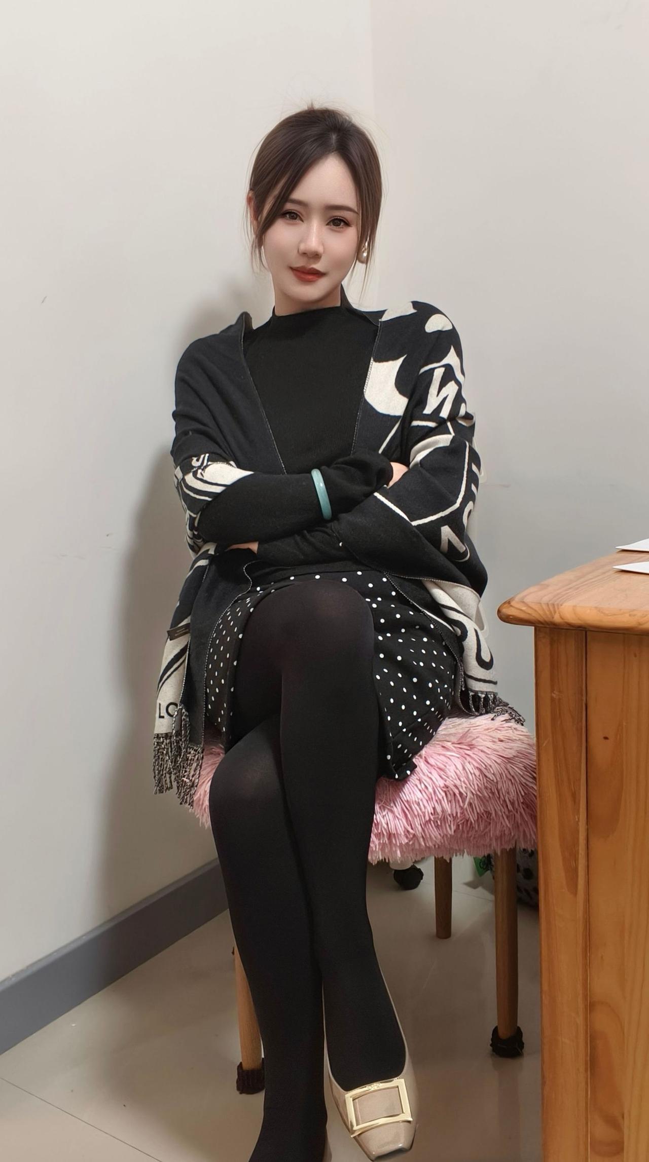 优雅气质穿搭,灰色毛衣搭配黑色短裙,简约时尚。