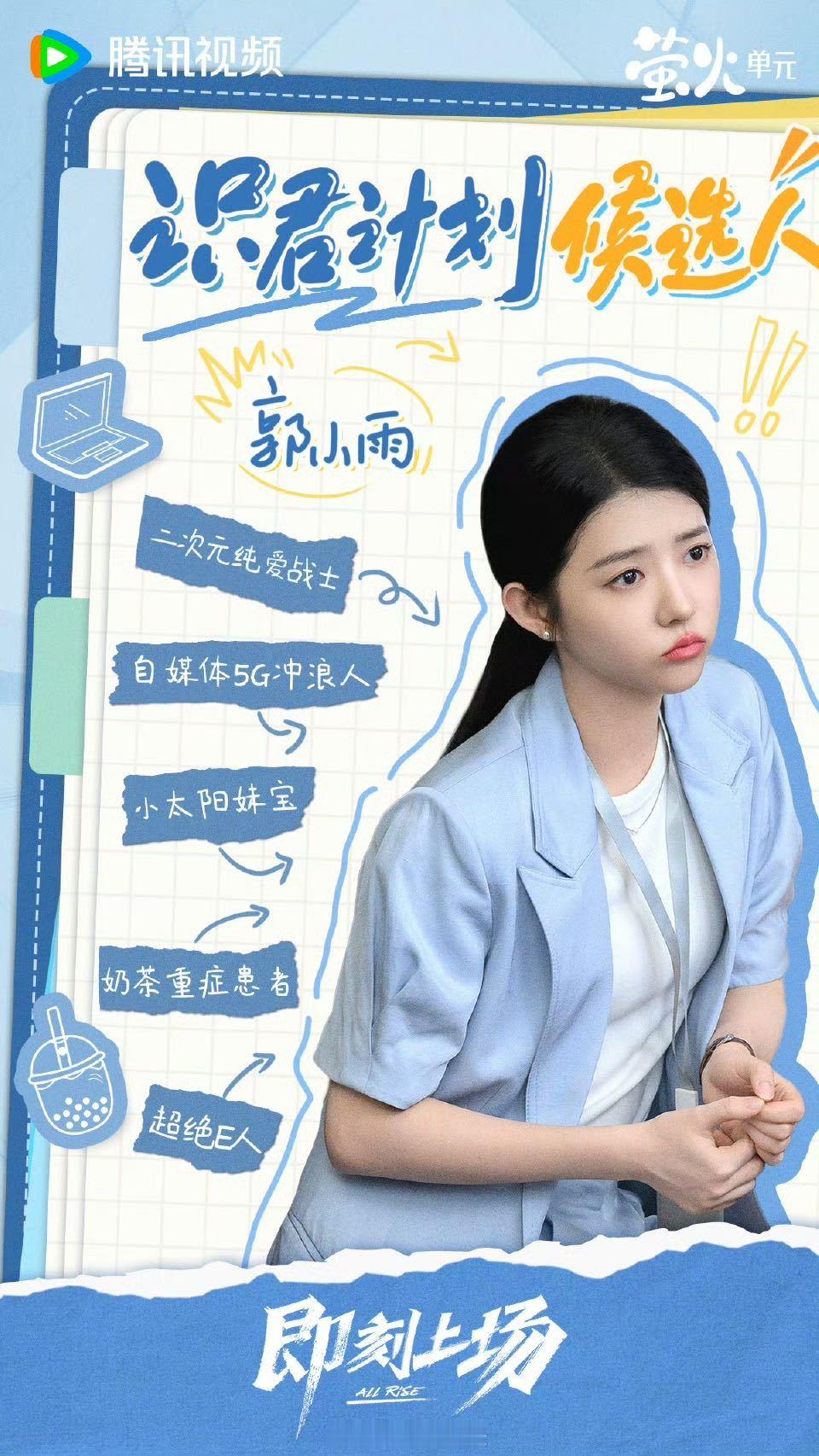 何蓝逗初代职场同事具象化了 新剧即刻上场 来啦~饰演二次元萌妹郭小雨,大四实习就进入顶级律所实习,刚进职场一整个活泼开朗,没多久就怨念满满~完全把初代职场同事具像化了!期待小雨最后靠着自己的聪明才智“c位出道”~