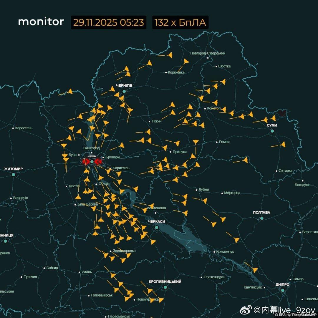 据乌媒报道,基辅遭大规模无人机袭击。约有100架无人机正从不同方向飞往基辅及周边地区