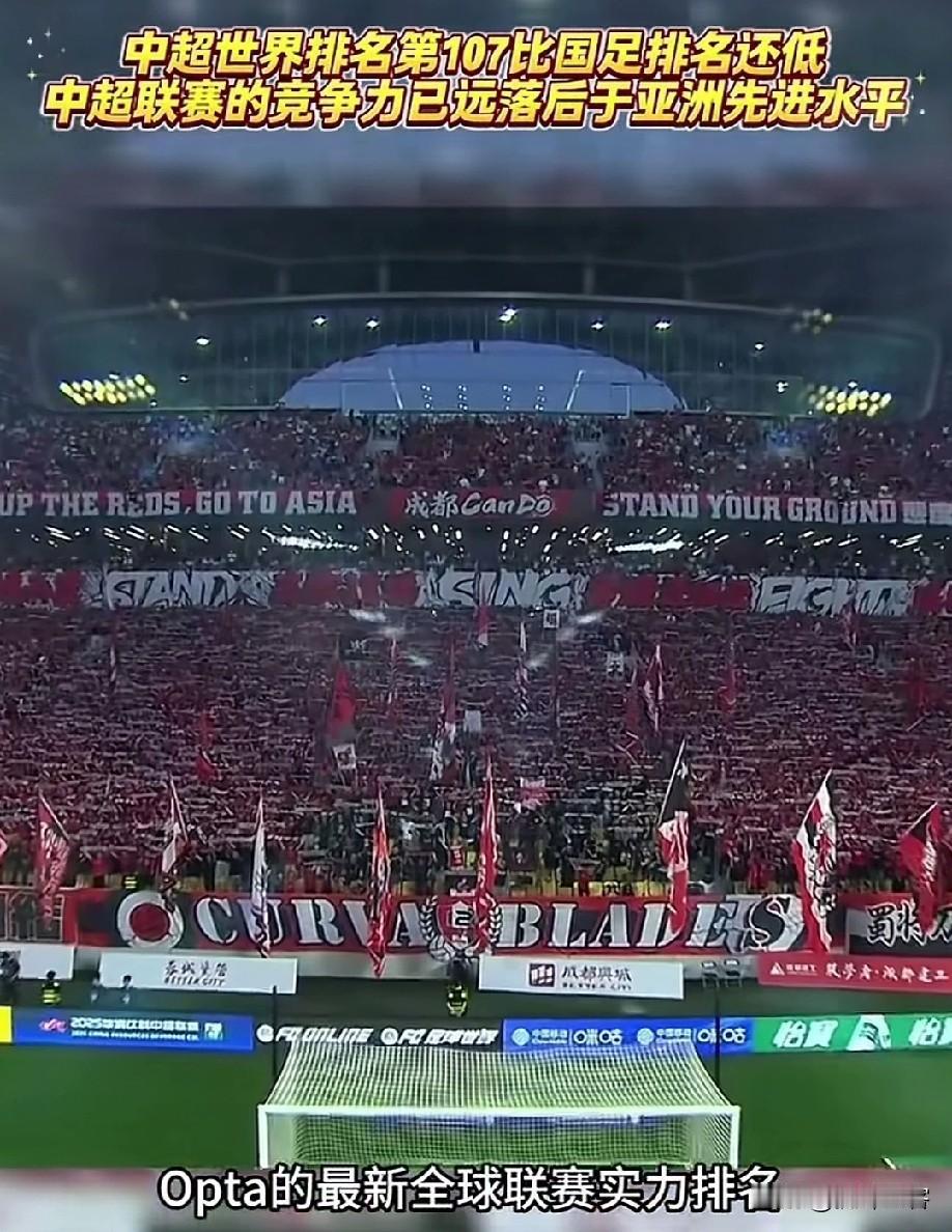 扎心了!曾经被誉为世界第六联赛的中超如今已经被嚯嚯到世界第107位,甚至比国足的排名还低。 根据opta给出是的最新世界最有实力联赛排名,中超联赛竟然已经堕落到了世界第107的位次,让人简直难以置信。 从榜单来看英超名列榜首成为世界上最具有竞争力的职业联赛,日本J联赛排在第19位为亚洲第一。 曾几何时我们在“金元时代”信心满满要把中超联赛打造成世界第六大联赛,然而时过境迁,泡沫戳烂,梦想破灭,只留下了一地鸡毛,当初的豪言壮语都成了无与伦比的笑话,所谓的中超强队在洲际赛场一触即溃,亚冠名额从最初的4+0一降再降直到现在的1+1,就今年中超球队在亚冠上的表现来看,迟早会被削减到0.5甚至归零。 [发怒][发怒][发怒]