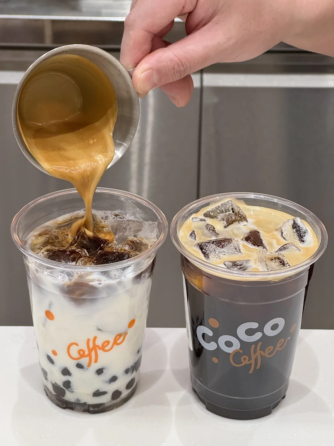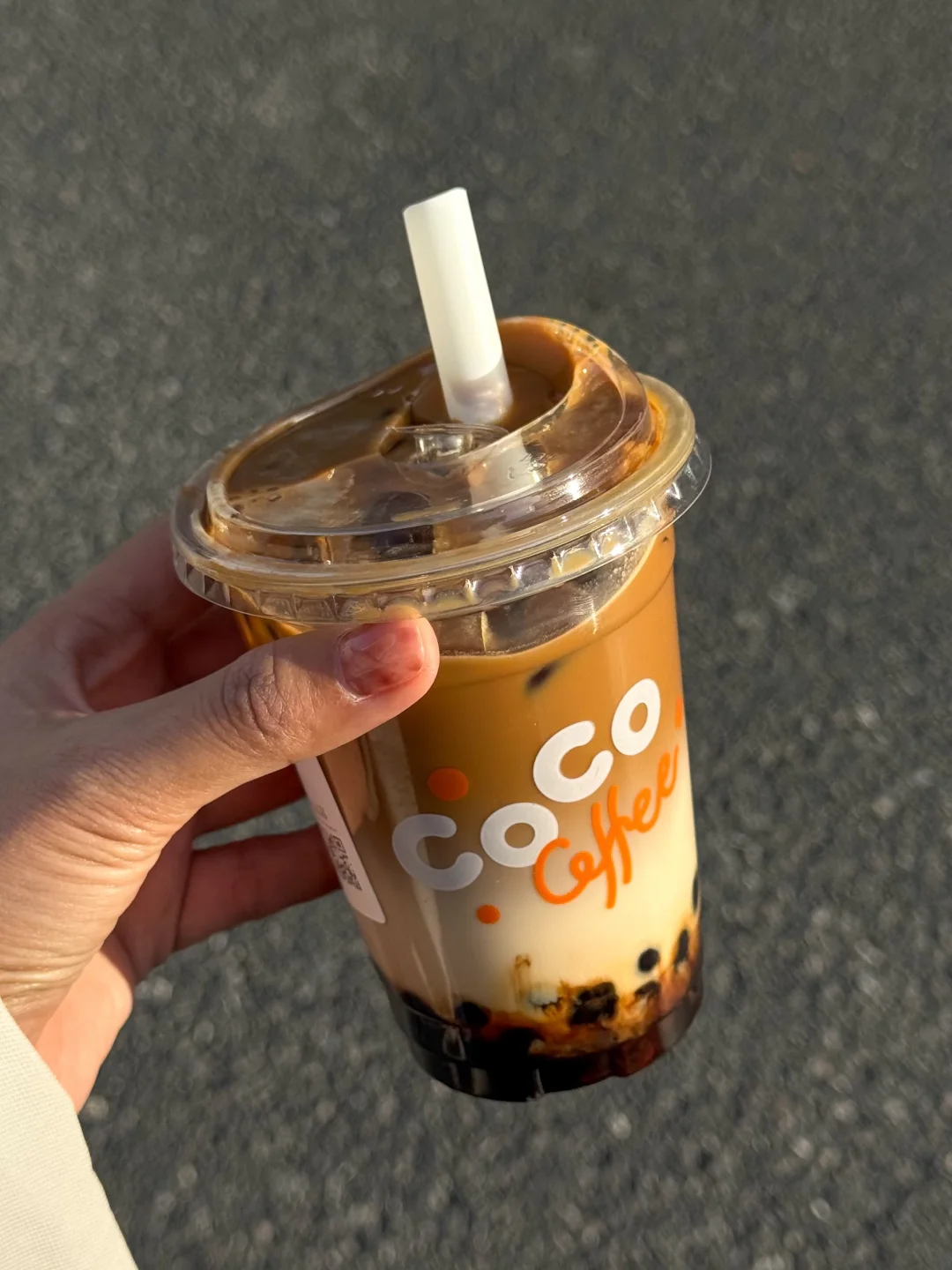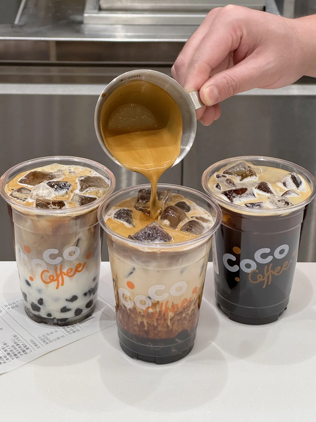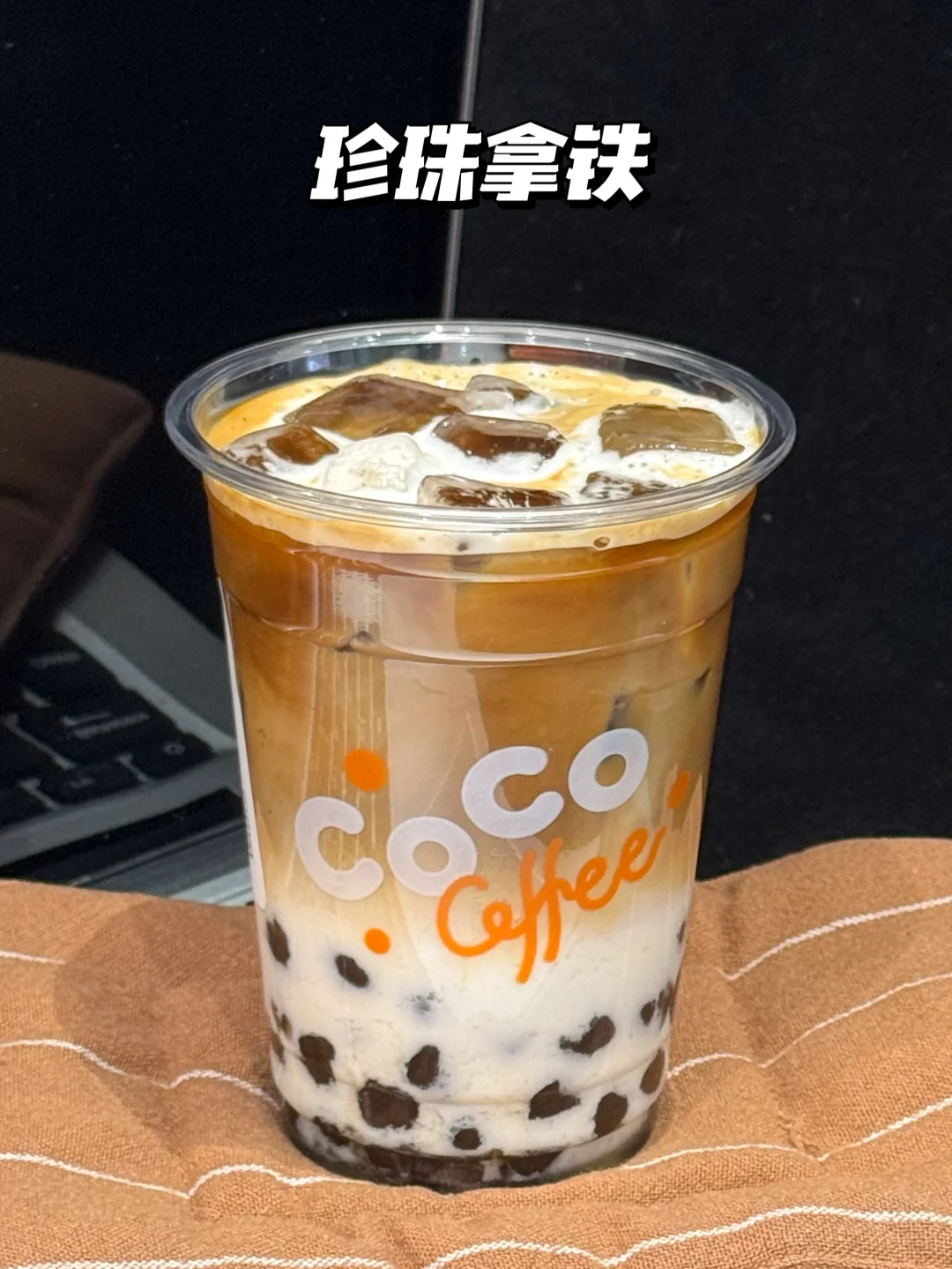 可以嚼着喝的咖啡 既能满足我小料嚼嚼嚼 又能喝到拿铁☕️ CoCo你真的好会!实现了咖啡可以嚼着喝~直接拿捏害怕苦涩😧不太会喝咖啡的我😭 ✔️黑糖珍珠拿铁 现熬现煮的黑糖珍珠QQ弹弹 搭配IIAC金奖咖啡☕️裹着鲜奶🥛奶香➕黑糖香 口感层次丰富不甜腻~ ✔️珍珠拿铁 嚼一口珍珠再嘬一口咖啡 奶茶和咖啡双重满足的快乐一次拥有!! ✔️经典美式 入口不酸不涩带着淡淡的杏仁香 清清爽爽的果干香 喝下去继续猛猛做牛马!