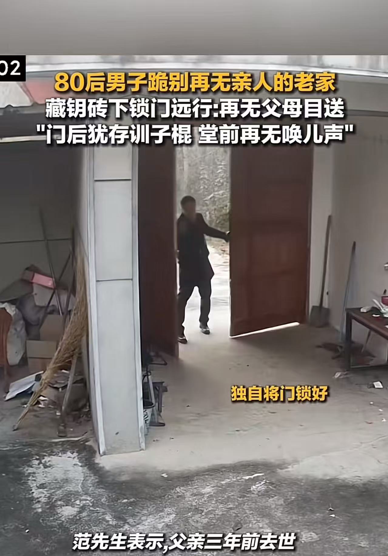 这一幕看哭太多人!父母双双去世后,80 后男子跪别再无亲人的老家!网友:门后犹存训子棍,堂前再无唤儿声!”