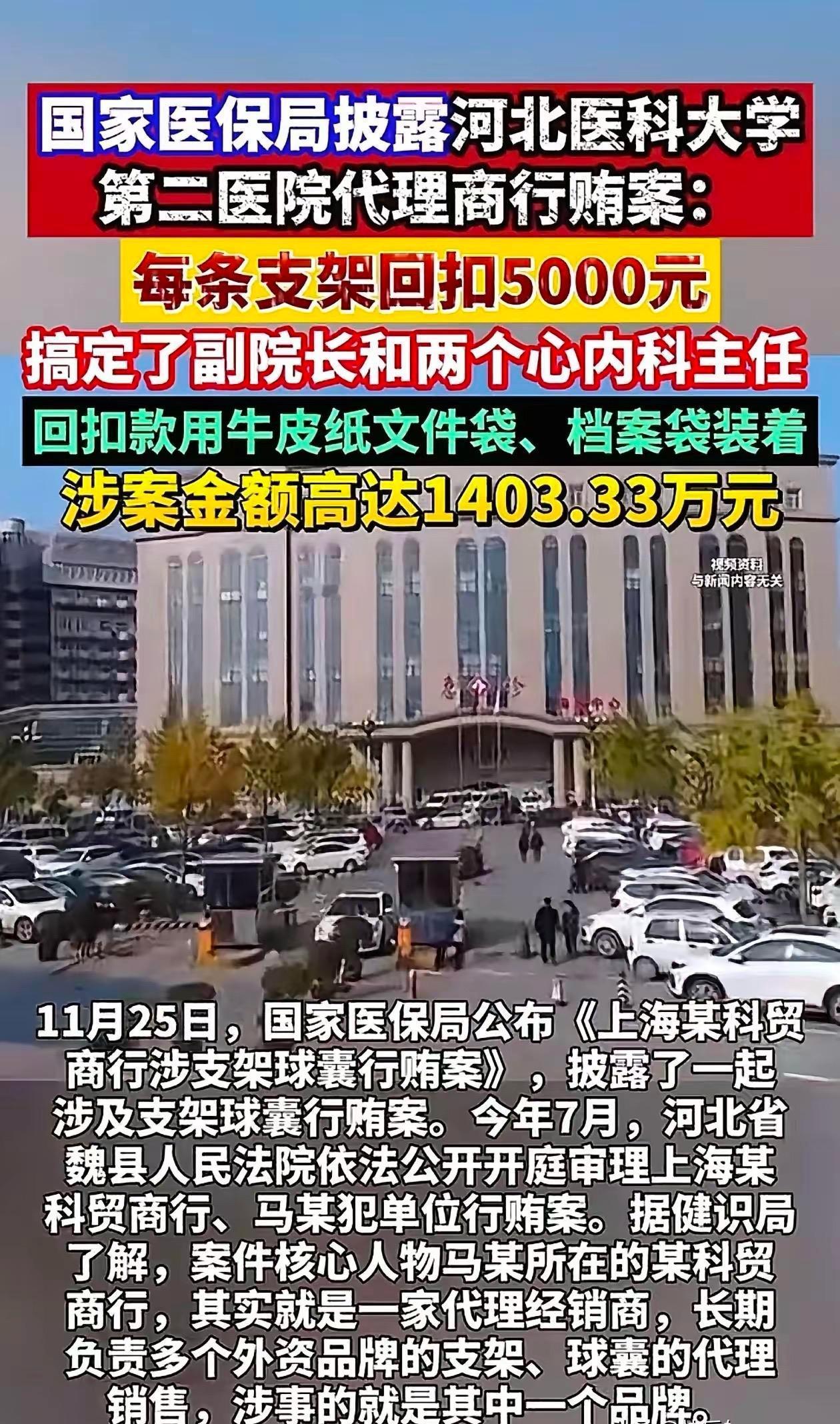 摆在桌面上直接要回扣!每支支架5000元!涉案1400多万!医生冷血无情! 医生直接向药代索取每个支架回扣5000元 副院长和两个心内科主任说的算 几年间涉案金额1403多万 回扣钱用档案袋和牛皮纸文件袋装着 药代直接送到副院长和主任手中 他们光明正大收取回扣 一个心脏支架回扣5000元 涉案1400多万,将近3000名患者被宰 受利益的驱使肯定有很多不需要装支架的患者被过度治疗。 一个副院长和两个主任就可以一手遮天在医院无法无天,为了利益赚黑心钱,必须严惩。心脏手术费用 心脏介入支架