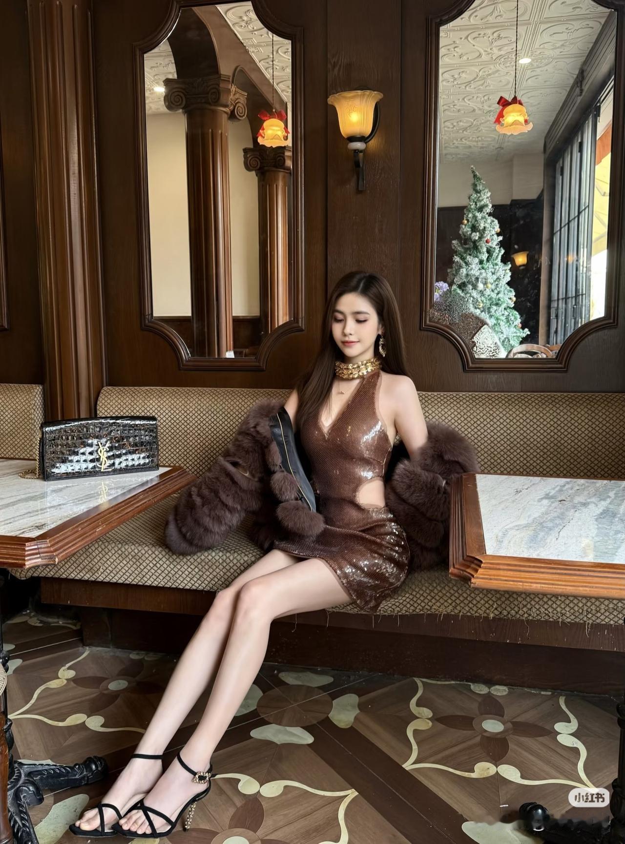 美女坐在沙发上,穿着时尚。优雅自信穿搭分享