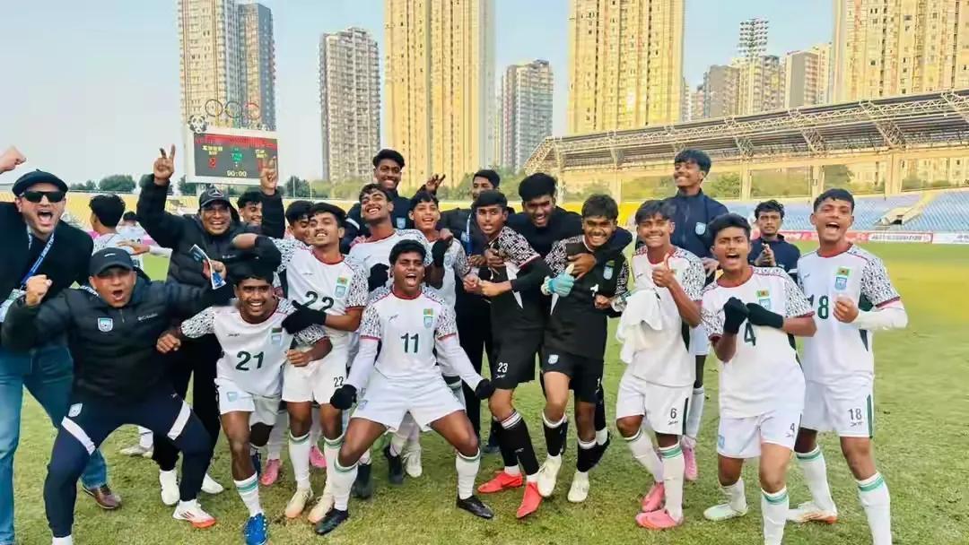 孟加拉国和中国队的实力差距就是3个球,根据前面4场比赛为参考数据,孟加拉国前4场比赛比分如下:孟加拉国5比0东帝汶;8比0文莱;5比0斯里兰卡;2比 1巴林;中国总净胜球38,孟加拉国总净胜球19,38-19=19个?去掉中国2个最大比分,取最低值,只参考巴林和斯里兰卡两队。 对巴林:中国4-0(净胜4)、孟加拉国2-1(净胜1),差距3球; 对斯里兰卡:中国8-0(净胜8)、孟加拉国5-0(净胜5),差距3球; 结合两队此前对阵同组4个对手的比赛表现,取最低值推算出:预测中国U16的实力大概比孟加拉国U16高出最少3球。 30日双方最后一场生死战,中国打平就出线,孟加拉国必须取胜才能出线,孟加拉国知道中国队实力在自己之上,孟加拉国为出线必会采用全力防守防击,有可能摆铁桶阵,并伺机快速反击制胜,中国队虽实力占优,但很难像打前面弱旅那样狂攻,很难狂轰乱炸进球,浮嶋敏肯定也是求稳,稳扎稳打,先保证防守的同时加强进攻,争取早点打破僵局,中国队只要放平心态,正常发挥,3比0拿下孟加拉国是大概率事件。 但是最怕中国队员心急,久攻不下太紧张,关键时刻掉链子,如果被孟加拉国先进球就麻烦了,所以最后一场心态是成败的关键,这批中国U16国少前场进攻人才济济,孟加拉国根本不可能防住的,平常心打比赛就可以了,中国必胜!