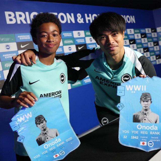 中日关系紧张之际…日国脚竟拿‘最后日本兵’照片合影!而且这件事还是这位日本国脚故意为之,目前还没有道歉 这一事件源于英超举办的纪念一战 “圣诞节休战” 的反战教育活动,活动初衷是让青训小球员搜集人物故事做成足球卡片来传递和平理念。布莱顿俱乐部官推原本发布了梯队一名 U12 小球员与三笘薰的合影,照片可见两人拿着印有日本帝国陆军成员的卡片,是1942年至1972年服役的陆军中尉小野田宽郎。 布莱顿俱乐部的解释是当时让青训小球员搜集一战人物故事做成足球卡片,结果有位疑似日裔小球员竟然选日本二战‘最后鬼子兵’小野田宽郎,并找日本国脚三笘薰合影,两人都拿着小野田的卡片。卡片上的小野田宽郎被称为 “最后的日本兵”,是双手沾满鲜血的二战侵略者。而且他归国后获日本政府慰劳金,还将这笔钱捐给了靖国神社,是日本右翼推崇的所谓 “英雄”,本质上是代表军国主义的争议人物。 但是据内部消息称,拿这张照片合影是三笘薰的主意,别扯是什么小球员,那孩子那么小,他能知道什么,就是日本国脚的主意,实在是可恶。 小野田宽郎最事迹是日本投降后他无视命令拒降,躲在菲律宾丛林里打了28年游击,这期间共造成130名菲律宾人死伤,1974年才投降。 反战活动本应警惕军国主义元素,却出现日本二战战犯小野田宽郎的相关卡片,这是对二战受害国人民情感的严重伤害,对亚洲人民的二次伤害。三笘薰作为日本国脚,不可能不了解二战历史,却与这样的争议人物卡片合影,而且还是他自己的主意,故意为之实在是可恶。目前三笘薰还没有道歉,只有布莱顿俱乐部的道歉。