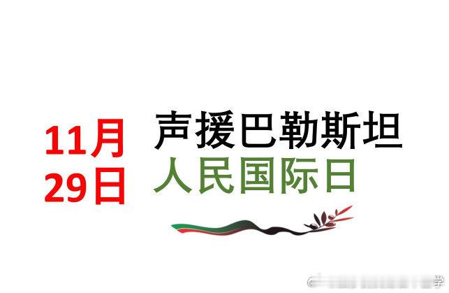 🟥声援巴勒斯坦人民国际日 :🇵🇸🇵🇸声援巴勒斯坦人民国际日(International Day of Solidarity with the Palestinian People)是由联合国确立的以动员国际社会支持巴勒斯坦人民争取合法权利的斗争为目的的纪念日,设在每年的11月29日。巴勒斯坦人民团结日是每年11月29日。这个日子具有明确意义。它始于联合国大会1977年通过的第32/40号决议,该决议将这一天设立为支持巴勒斯坦人民权利的纪念日。这项决议记录在联合国档案中。这一天也与1947年的不公正分治方案第181号决议相关。该决议将土地划分为犹太国家和阿拉伯国家,但巴勒斯坦国家从未建立,巴勒斯坦人民自那时至今一直遭受灭绝和种族清洗。巴勒斯坦人民团结日并非象征性行为。它提醒世界,巴勒斯坦人民仍在要求国际公认的权利,例如回归权和自决权。这一点在多项联合国决议中得到支持,包括第194号决议和第3236号决议,它们确认了巴勒斯坦人民的回归权与独立权。🇵🇸✊🏼♥️🌍看见具体的巴勒斯坦人不要停止讨论巴勒斯坦香港大埔火灾已致128人遇难