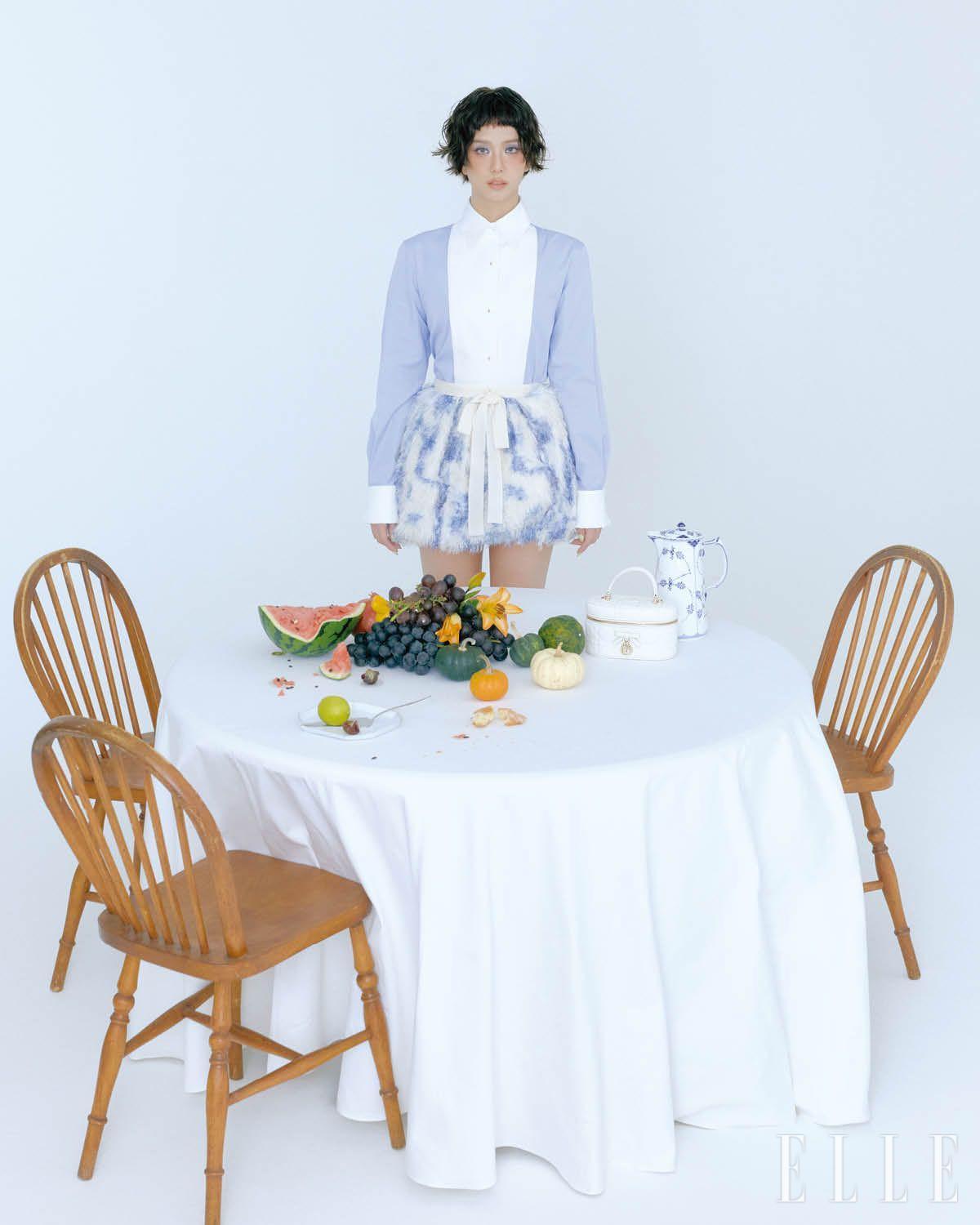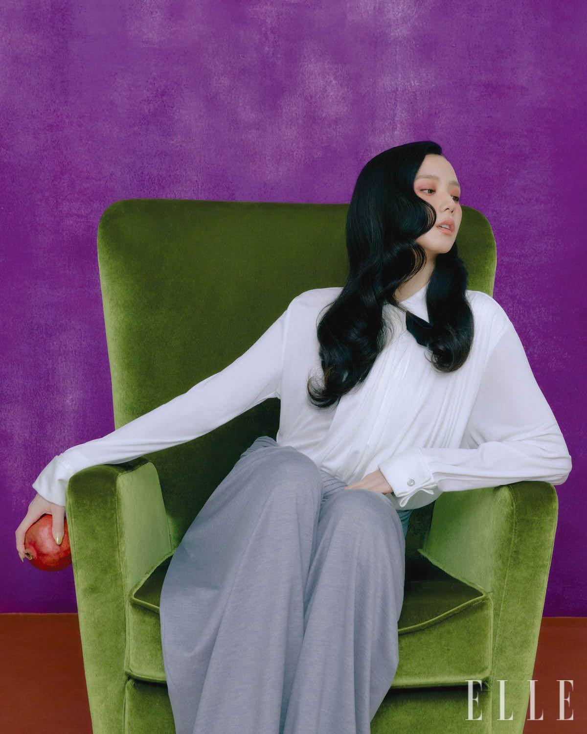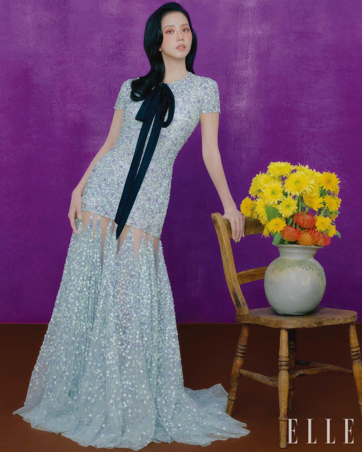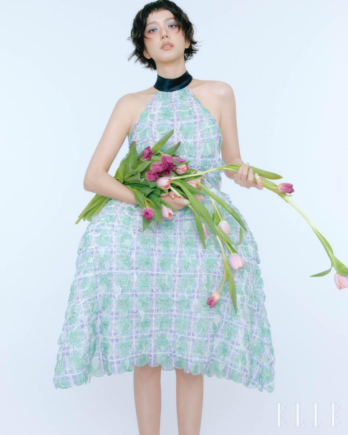 金智秀 x Dior x ELLE Korea古典美人入画胜如画韩版ELLE十二月刊封面大片的色彩运用得真好,淡雅的绿贯穿整组画报💐