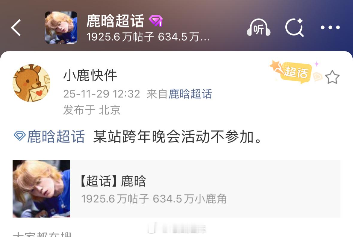 鹿晗对接发文辟谣,b站跨年晚会活动不参加,还是安心等待鹿晗其他的新消息吧!